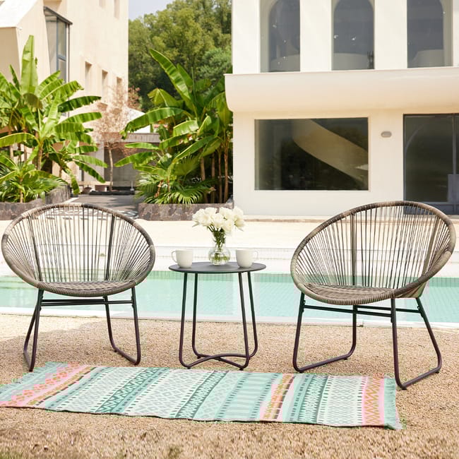 Divanetto Da Esterno Set Salotto Da Giardino 2 Posti Con Tavolino - Lido Terrace Salottino Da Giardino Esterno Le poltrone in polyrattan da 70 x 69 cm offrono un tocco di stile perfetto per terrazzi, balconi o giardini, mentre il tavolino da 50 x 50 cm con piano in vetro aggiunge praticità senza rinunciare all’eleganza. Questo set di mobili da esterno è composto da due poltrone e un tavolino coordinato. Il design moderno e sofisticato del salottino si adatta perfettamente a qualsiasi decorazione esterna, mentre i materiali di alta qualità garantiscono la durata e la resi Comfort e resistenza: Le poltrone ergonomiche garantiscono un comfort ottimale grazie alla loro struttura avvolgente e ai materiali flessibili che si adattano al corpo. Facile da montare e mantenere: Questo set viene fornito con istruzioni intuitive per un montaggio rapido e semplice. I materiali resistenti e la superficie liscia del tavolino in vetro facilitano la pulizia quotidiana, permettendo di mantenere il set sempre in ottime condizioni con il minimo sforzo. Versatile e adatto a ogni ambiente: Perfetto per creare un angolo relax sia in spazi interni che esterni, questo set si adatta a diverse esigenze. Il polyrattan è resistente agli agenti atmosferici, ideale per l’uso all’aperto, mantenendo intatta la sua qualità nel tempo senza necessità di manutenzione eccessiva.