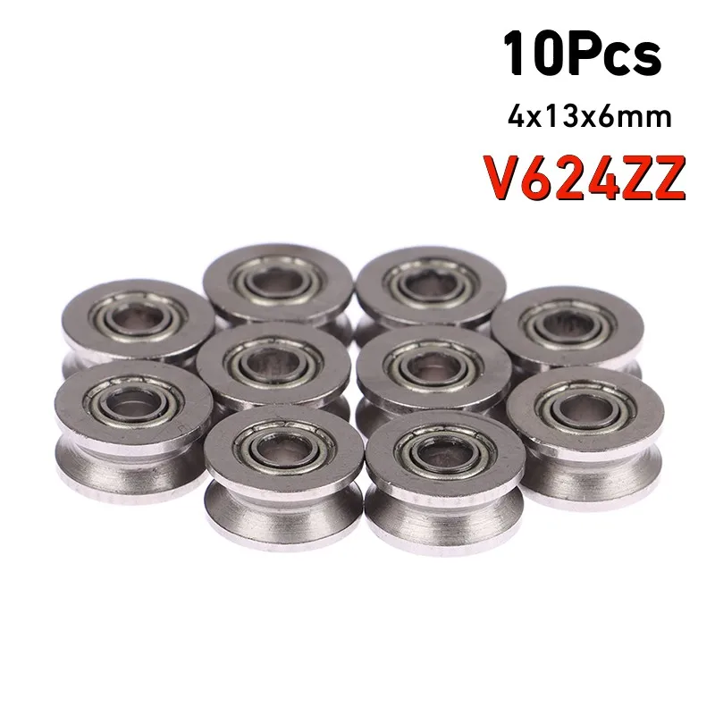 V624ZZ Cuscinetto A Sfera Acciaio, MAGT 10pcs Puleggia Del Acciaio Al Carbonio Del Cuscinetto A Sfera Della Scanalatura V-Groove Guida Puleggia Cuscinetto Per Binario Ferroviario Sistema Di Movimento