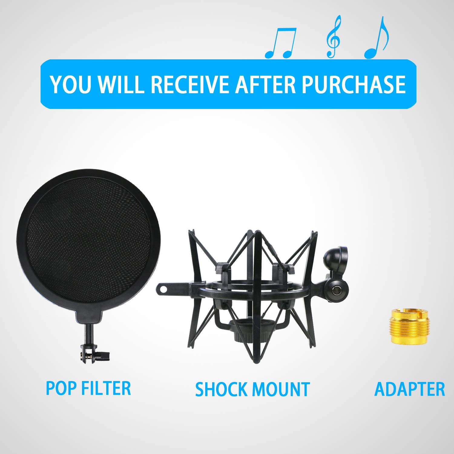 Shock Mount Blue Ember Mic Con Filtro Pop Para Reducir El Ruido De Filtro A Cono Blu Design speciale - Shock mount è progettato appositamente per Blue Ember Mic per ridurre le vibrazioni in modo efficace, risparmiando tempo di editing audio. Shockmount professionale - Appositamente progettato per il microfono Blue Yeti e Yeti Pro per ridurre le vibrazioni. Riduci i tempi di editing audio. Con un parabrezza in schiuma puoi migliorare la qualità della tua voce. Imballaggio (Boom Arm Stand non incluso) Migliora la qualità del suono - Filtro anti-pop Blue Ember lo rende più trasparente per smorzare il rumore pop delle frequenze più alte. Pacchetto - Include: supporto Blue Ember Shock e Pop Fliter. È molto leggero e si adatta alla maggior parte del braccio / asta del microfono (misura 3/8 e 5/8). Struttura perfetta - l'ammortizzatore è realizzato in plastica rigida ABS.