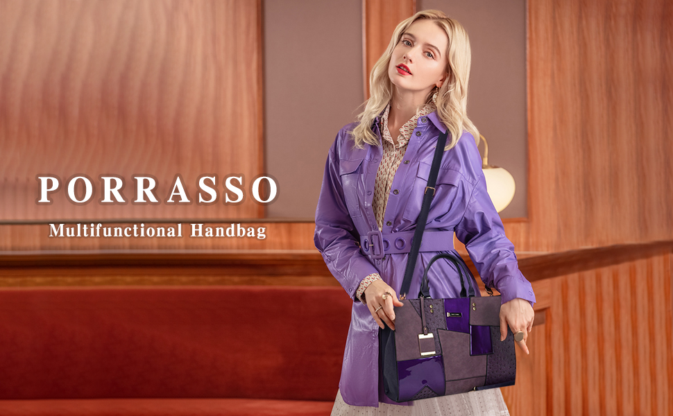 PORRASSO Women Handbag Fashion Tote Bag Ladies Large Shoulder Bag PU Leather Top-Handle Bag For Work Travel Shopping Black