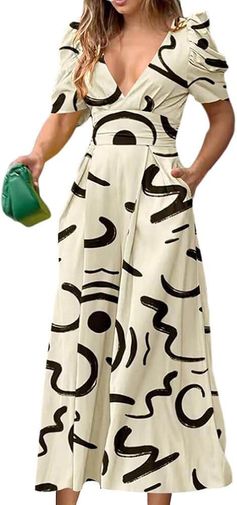 Shownicer Tuta Da Donna Estiva Scollo A V Jumpsuit Elegante Manica Corta Playsuit Romper Casual Stampa Pagliaccetti Pantaloni A Gamba Larga Tuta A Albicocca S : Amazon.it: Moda