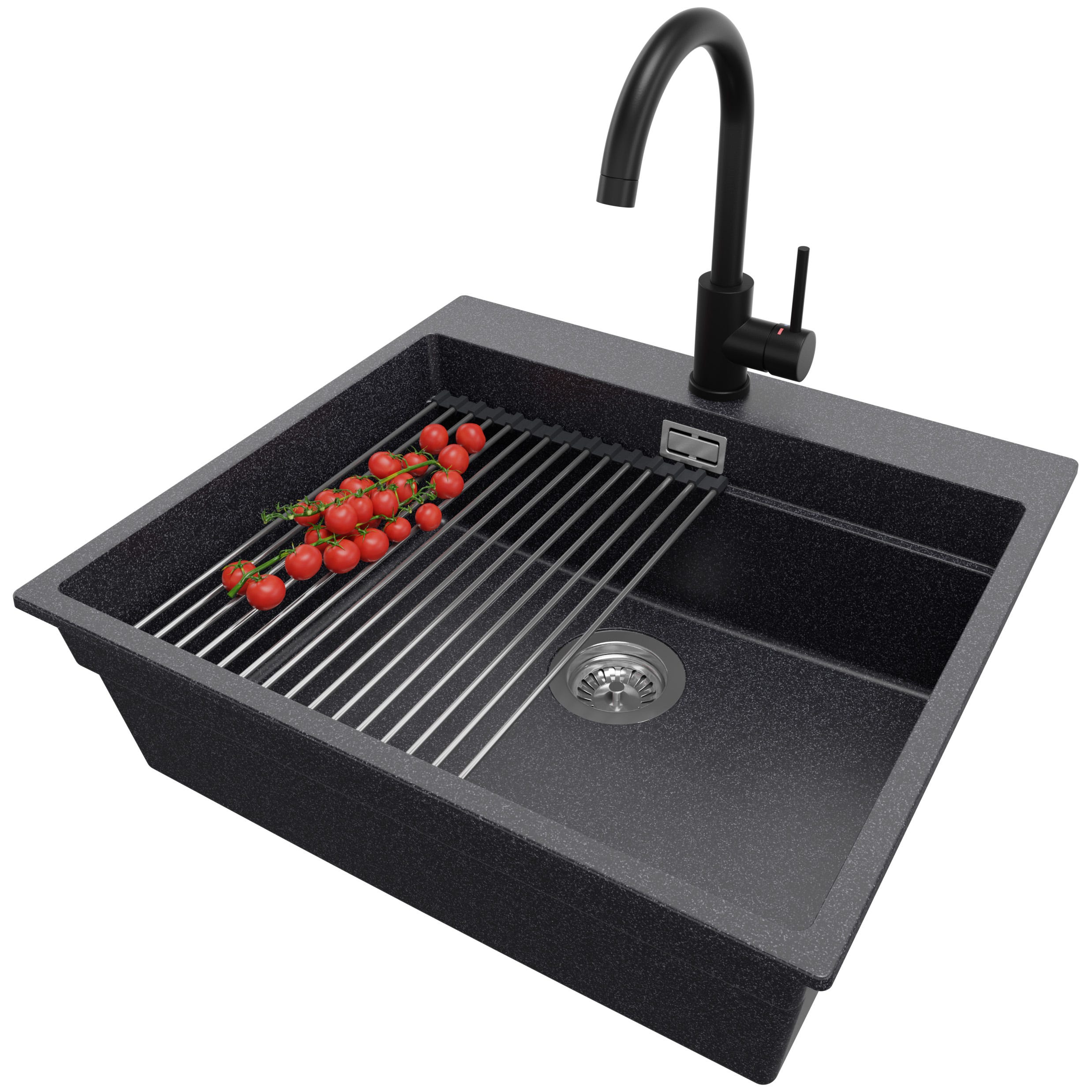 Lavello Da Cucina Beige 58x53cm, Lavandino Da Cucina A 1 Vasca + Sifone Classico + Scolapasta Avvolgibile, Lavabo Da Cucina Incasso Al Mobile 60cm - Oslo Max Di Primagran