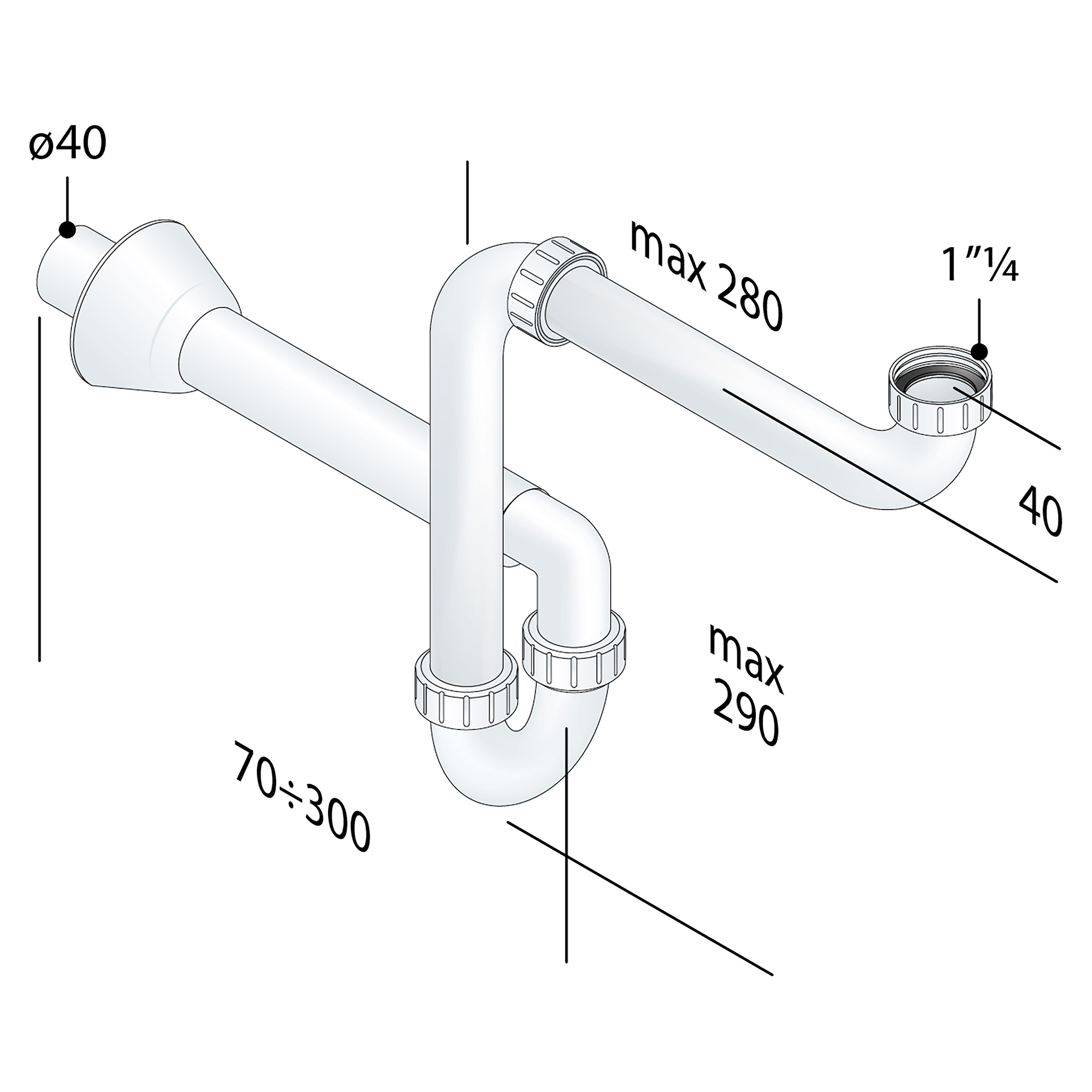 Sifone Di Plastica Per Bacino 1 1 1/4’’, Dn 32, Branchm. Dispositivo, Bianco