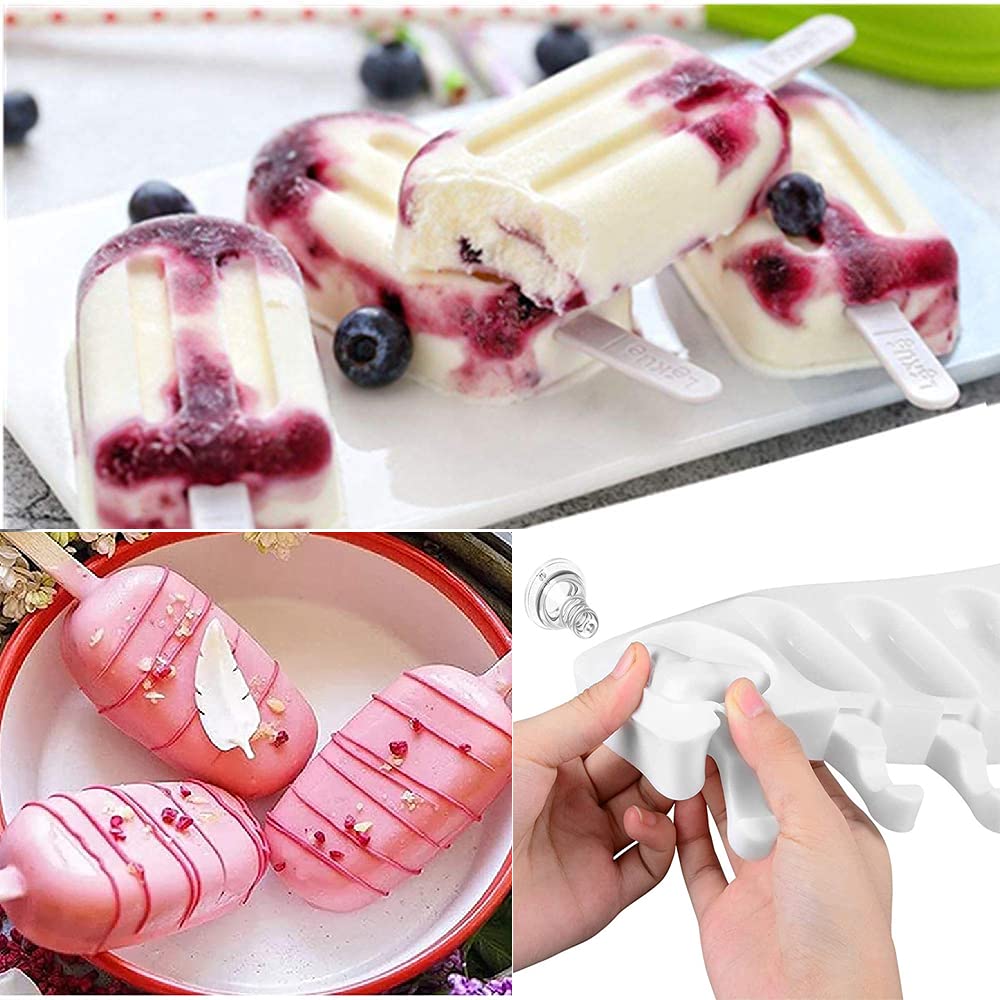 Stampi Per Ghiaccioli In Silicone,Stampi Ghiaccioli In Silicone,stampi Gelato Silicone,Stampo Per Ghiaccioli, Classic, Silicone, Bianco, 8 Unità Cavità (50 Pezzi Di Bastoncini Di Legno) : Amazon.it: Casa E Cucina