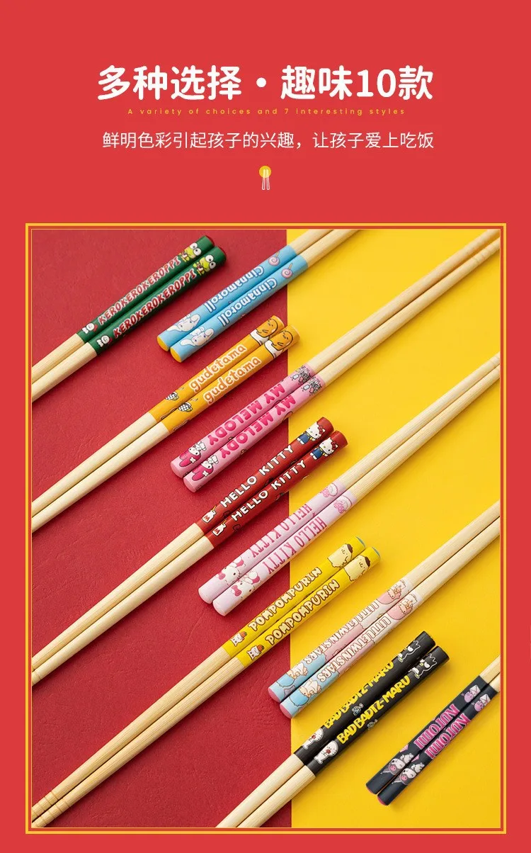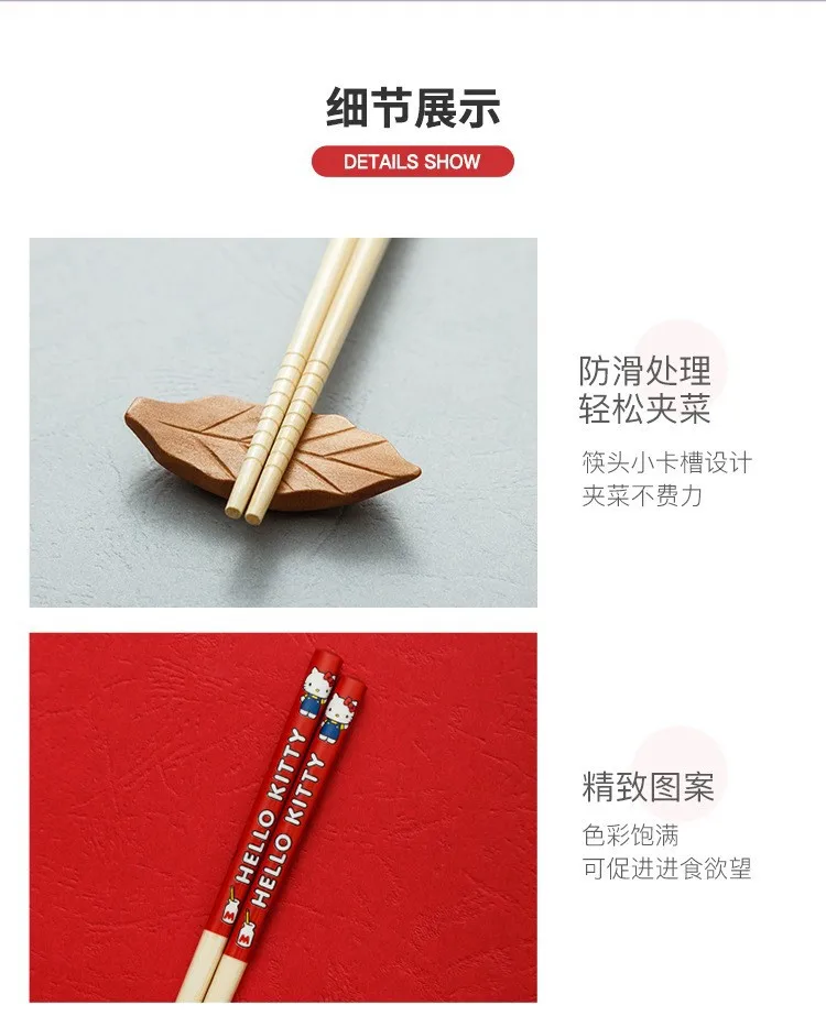 Bacchette Di Bambù Naturale Sanrio Hello Kty Simpatico Cartone Animato Riutilizzabile Sushi Cibo Stoviglie Utensili Da Cucina Bacchette Di Legno Cinesi