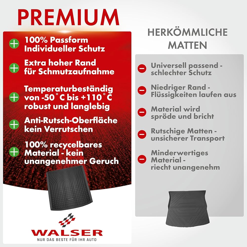 Protegge da sporco, acqua, neve molto altro ancora Con la vasca baule , su misura per la tua auto, d'ora in poi sporco, bagnato e acqua nel portabagagli non saranno più un problema. La vasca baule è realizzata in un materiale molto resistente e antiscivolo, in grado di mantenere fermi e in posizione gli o Per questi problemi c'è ora un prodotto che renderà la vostra vita quotidiana molto più facile. Un tronco protetto Ogni giorno trasportate in auto scatole sporche, prodotti bagnati e vasi di fiori. L'unica soluzione è il bagagliaio, che passa rapidamente da bello e pulito a macchiato e sporco. Il tappetino per vano portabagagli XTR di WALSER con sagomatura perfetta: su misura per il vostro bagagliaio. Grazie ai materiali di alta qualità, il tappetto in gomma per baule XTR è particolarmente facile da pulire D'ora in poi, gli scarponi da trekking sporchi non saranno più un problema. Con sagomatura perfetta: il vasca baule XTR sono realizzati in materiale TPE di alta qualità - compatibile con Skoda Karoq (NU7) piano di carico superiore 07/2017 - Oggi, non adatto ai modelli con sedile posteriore Varioflex Pulizia e montaggio Grazie all'elevata elasticità del vassoio del tronco, è molto facile posizionarlo correttamente nel tronco e rimuoverlo. Skoda Kamiq Vasca Baule Su Misura In Gomma Sintetica - Compatibile Per Honda Civic 5p 03170722 Con Ruotino Skoda Karoq Inoltre, la vasca ha bordi alti per trattenere eventuali liquidi e sporcizia. Caratteristiche uniche La vasca è realizzata in materiale molto resistente e antiscivolo, in modo che tutti gli oggetti trasportati rimangano al loro posto.