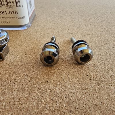 Schaller Strap Lock Schaller S Size Security Strap Locks/Buttons - Black Chrome Gold Strap Locks 7 pin per cintura inclusi. Elevati standard di qualità dei materiali e della lavorazione. Innovativo e preciso Schaller S-Locks offer the most secure connection between your strap and guitar while remaining easy and silent to use! New and unique solid one-piece strap button in hardened steel with self-tapping wood thread. Simply screw it on with an Allen key (size 3 mm). 1 Silent Feature solo in combinazione con un nuovo lucchetto S-Lock. Made in Germany