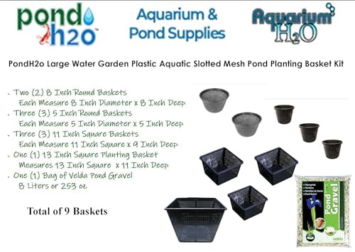 Small Water Garden Pond Aquatic Plastic Mesh Planting Basket Kit, Variety Of 8 Pond Plant Or Flower Planter Pots For Aquaponics