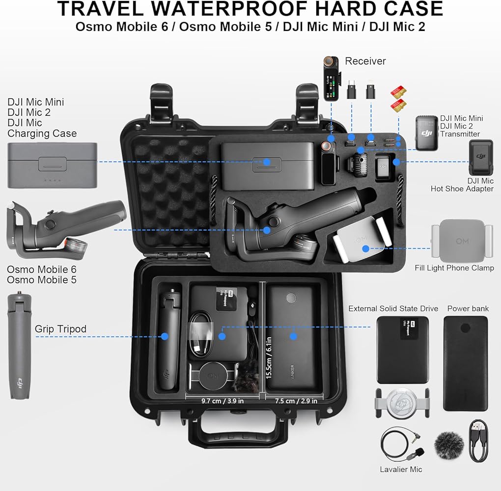 Può anche essere fissato all'esterno dello zaino con un gancio, facile da trasportare e utilizzare. Occupa pochissimo spazio. Ideale per i tuoi viaggi. Strong Protection: IP67 Waterproof & Dustproof,dji osmo mobile 7P Protective Case is Anti-Impact, it can protect your osmo mobile 7 against water, dust, drops, and scratches in extreme environments (rain, sand, outdoor adventures Può essere messo nel tuo zaino, valigia o anche nella tasca dei tuoi vestiti. Protezione potente: Custodia protettiva per DJI Osmo Mobile 7P con certificazione IP67, impermeabile e antipolvere. Se hai domande, non esitare a contattarci in qualsiasi momento. (Solo custodia) Cosa otterrai: 1x Borsa impermeabile Lekufee, 1x kit di schiuma a spugna, 1x gancio in metallo, 1x cinturino regolabile da polso, 1x manuale utente, la nostra garanzia di 12 mesi e un servizio clienti amichevole. 1 Custodia da Viaggio 2 Custodia Rigida 3 Custodia Portatile 4 Contenitore per Riporre 5 Custodia Protettiva Proteggi gli accessori del tuo DJI Osmo Mobile 7P durante il trasporto o i viaggi. Capacità di archiviazione: 1x DJI Osmo Mobile 7P o Osmo Mobile 7, 1x morsetto per telefono, modulo di tracciamento, cavo di alimentazione e altri accessori. Gimbal Smartphone Mobile 7P Er En Smartere Gimbal - Følger Motivet Med Smart Sporing Dji Osmo