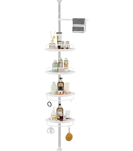 Smartpeas Mensola Doccia Telescopica Senza Fori – 4 Scafali – Altezza Regolabile Da 76 A 280 Cm – Estremità In Gomma – Acciaio Verniciato A Polvere
