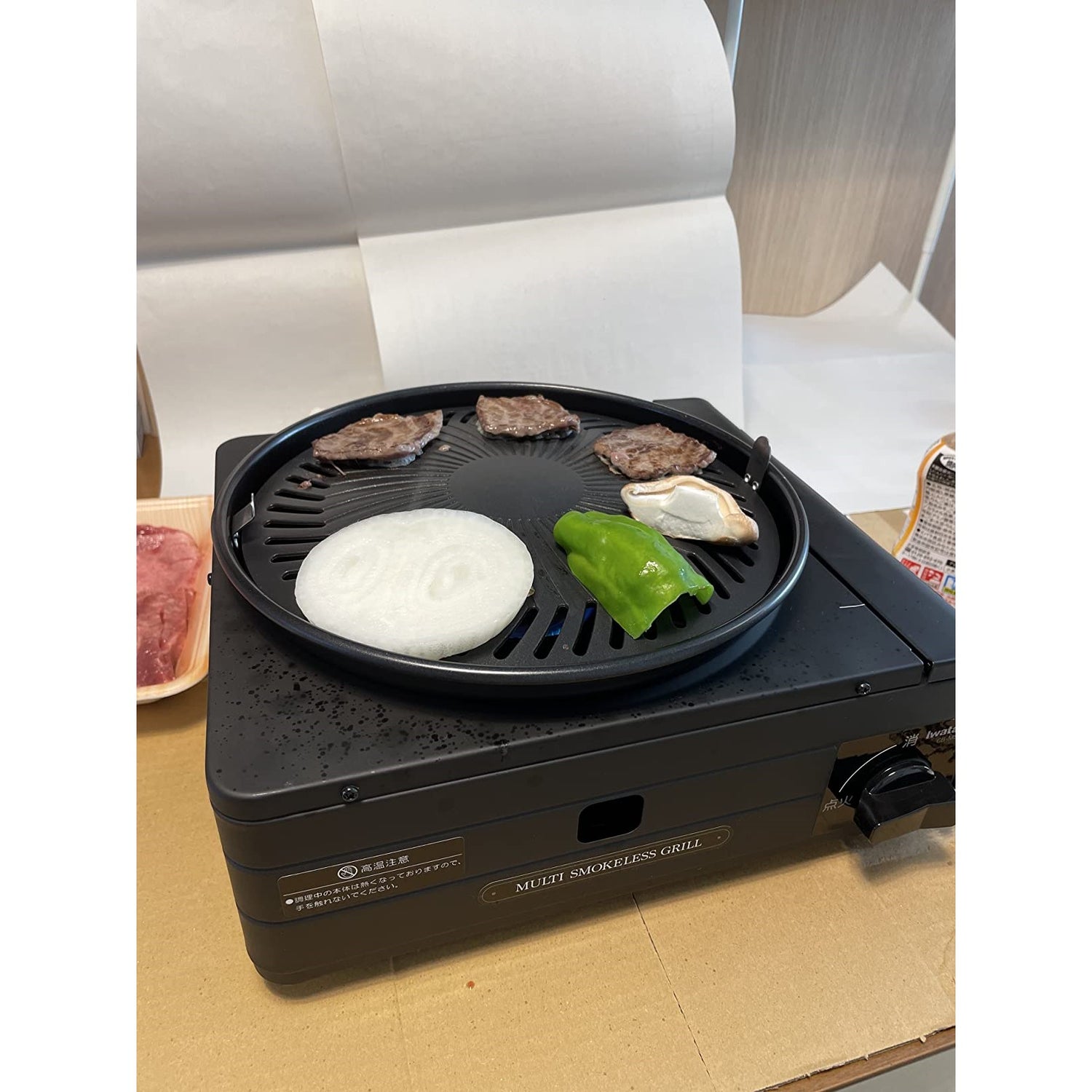 Dimensioni del corpo: 303 (larghezza) x 278 (profondità) × 149 (altezza) mm / peso: circa 2,0 kg; dimensioni della piastra (diametro): 233 mm Materiale: (corpo): acciaio (verniciato a polvere) / (piatto) alluminio pressofuso (trattamento fluorino) / (bruciatore) alluminio pressofuso resistente al calore / (tappi per dispositivi a bottone) resina ABS Iwatani Smokeless grilled meat Yakimaru (Japan import / The package and the manual are written in Japanese). $245.99. AUD · USD · CAD · EUR · NZD · GBP · JPY Rimuovere il fumo per controllare la temperatura della superficie cotta a circa 10 ~ 50 ℃ Creare una guida sul retro della piastra in modo che il grasso non venga applicato alla fiamma. jp/support/manual/list/pdf/manual_pdf71.pdf URL manuale giapponese (PDF): http://www.i-cg. Descrizione del prodotto: rimuove la generazione di fumo, la carne facilmente tostata può essere goduta nella stanza. Crea un percorso grasso. Un'ingegnosità strutturale liscia al grasso, come i seguenti elementi in modo che la caduta nel piatto d'acqua del piatto. Korean BBQ Cooker IWATANI Smokeless Korean Barbecue Grill YAKIMARU CB-SLG-1 Indoor Korean BBQ Grill Table