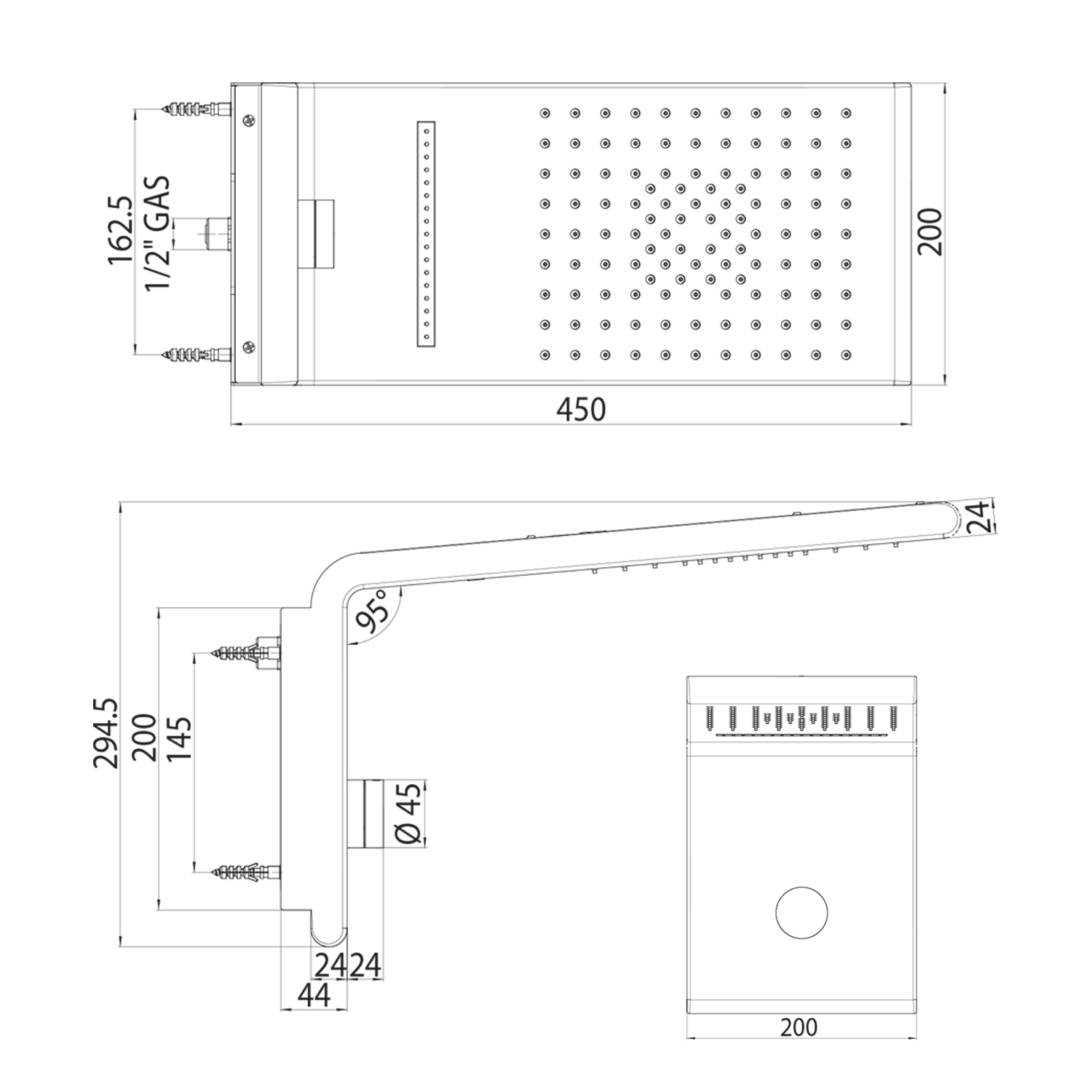 Composizione Syncro Con Soffione 20x20, Braccio Doccia Da 40 E Kit Doc