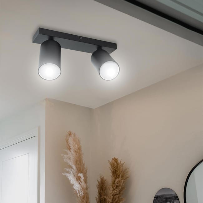 Schiele Lampada Faretti Da Soffitto Orientabili, Barra Faretti LED Soffitto Nero, Lampadario Con 2 Faretti GU10, Faretti Parete Interno Per Salotto, Camera Da Letto, Cucina, Lampadina Non Incluse