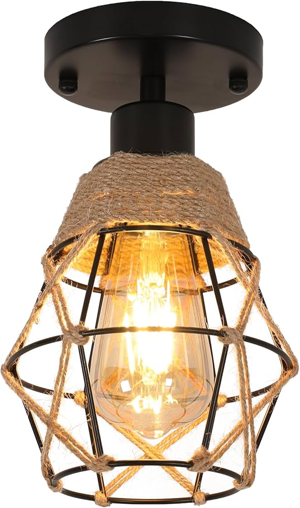 Quando si cambia la lampadina o si esegue la manutenzione, spegnere sempre l'apparecchio. Si prega di confermare le dimensioni prima di ordinare. Inoltre, la gabbia di ferro protegge efficacemente il bulbo, evitando che urti o cada, in modo da migliorare la sicurezza d'uso. 💎Portalampada E27: viene utilizzato un portalampada standard E27, compatibile con diverse lampadine e con una potenza massima di 60 W. Lampada a Sospensione lampada a sospensione lampada a sospensione Più dettagli Dettaglio in corda di sisal Questa lampada da soffitto utilizza la corda di sisal come elemento decorativo, conferendole un aspetto naturale e rustico. Questa plafoniera creativa offre un'esperienza di illuminazione luminosa e confortevole. Plafoniera Vintage BRILONER Lampade – Lampada Da Soffitto Retrò Con Binario In Legno, 3 Lampadario Plafoniera Vintage Questa lampada da soffitto ha una testa E27 e si consiglia una piccola lampadina a led. 💎Dimensioni del prodotto: le dimensioni sono 26 x 26 x 26 cm, design compatto e preciso, adatto a diversi spazi. Cornice metallica il fondo della plafoniera è in ferro, finemente lavorato e lucidato per presentare una texture metallica. 💎Design a diamante: il design unico a forma di diamante aggiunge un tocco di lusso a questa plafoniera soffitto, ogni angolo emette una luce affascinante, rendendo la stanza affascinante. Design a gabbia di ferro a forma di diamante Il paralume di questa plafoniera adotta un design a gabbia di ferro a forma di diamante, unico e alla moda. La trama e la sensazione della corda di canapa possono aggiungere un senso di calore e comfort alla stanza, rendendo l'intero spazio più accessibile. La forma a diamante del paralume può produrre bellissimi effetti di luce e ombra quando la luce passa, aggiungendo un'atmosfera artistica alla stanza.