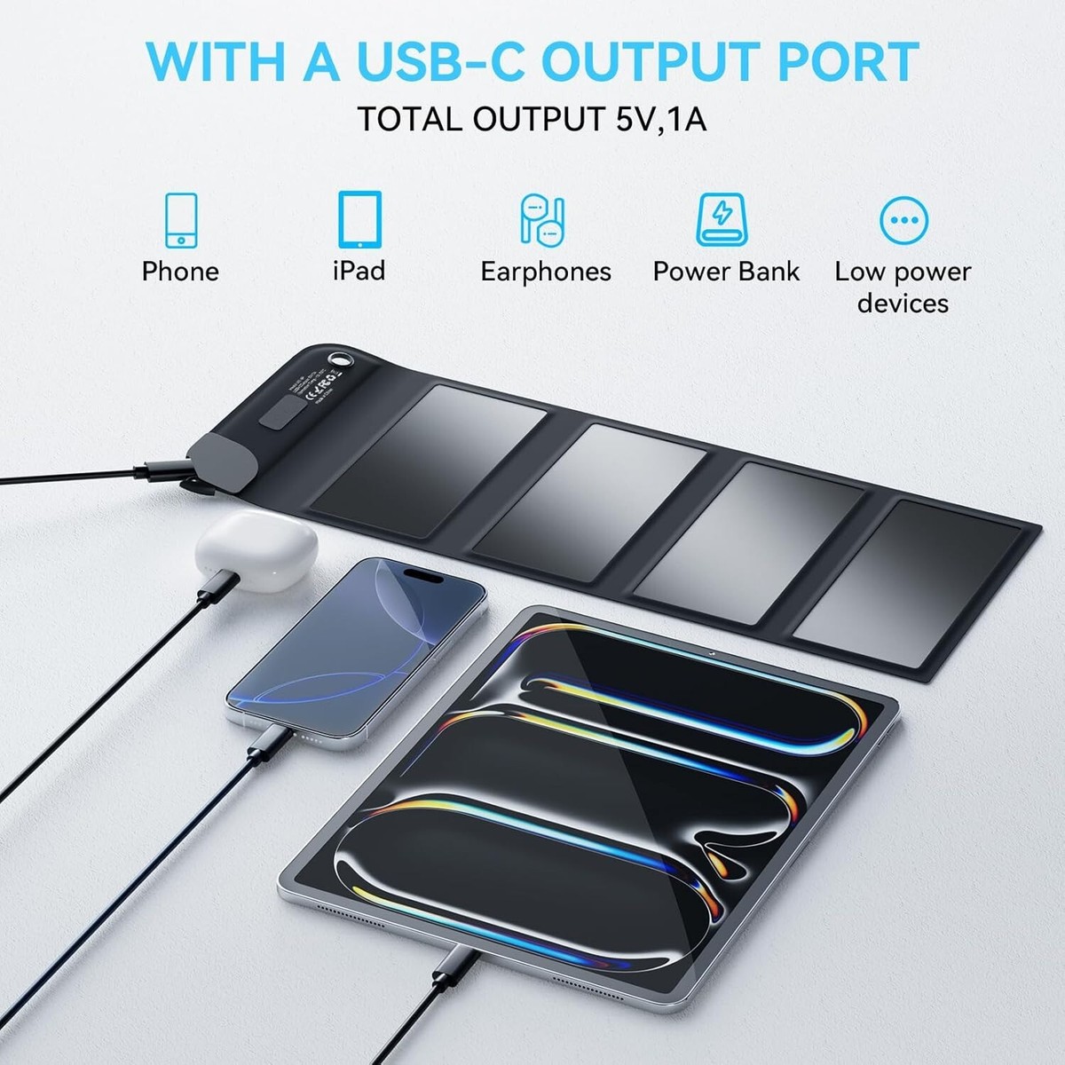 Ecosonique 8W Caricabatterie Solare Per Cellulare, USB-C 5V Piccolo Pannello Solare Portatile Pieghevole Per Telefoni Orologi Intelligenti Fan Torce Elettriche Power Bank Del Centro Commerciale