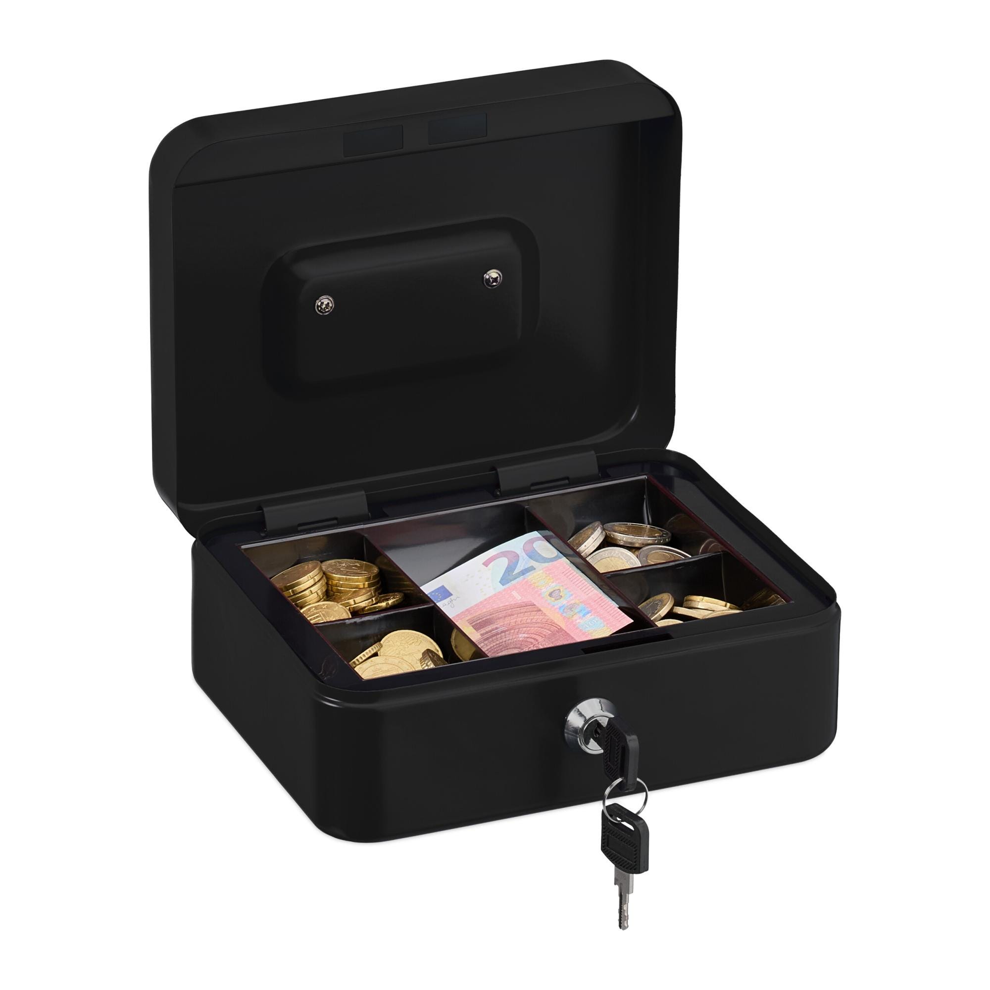 Relaxdays Cassetta Con Serratura, Porta Soldi Con Inserto Rimovibile, 5 Scomparti, In Ferro, 8,5