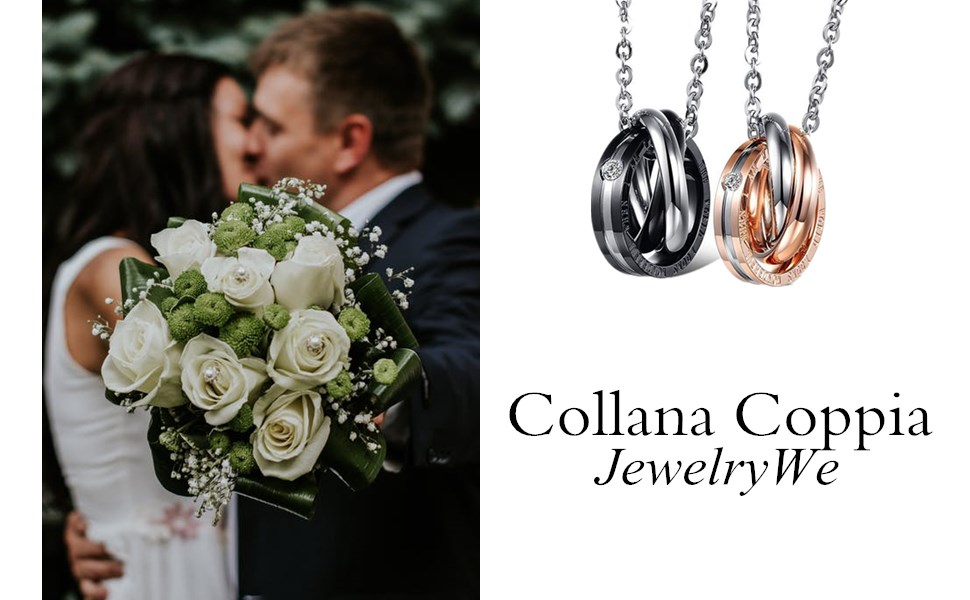 Gioielli Per Coppia COOLSTEELANDBEYOND Stile Vintage, Ciondolo Sole Oro, Unisex Collana Con Pendente Da Uomo Donna, Acciaio Inossidabile, Catena Corda 56CM Anelli Con Ciondolo Siamo specializzati in tutti i tipi di gioielli di moda come: bracciale, collana, anello, orecchino, orologio, ecc. Sei indeciso se acquistare questo prodotto? Abbiamo analizzato per te 159 recensioni su Jewelrywe Gioielli Collana con Pendente da Uomo, Ciondolo, Catenina 70.5cm, Proiettile Militari, Dog Tag Stile Esercito, Lega, Nero Argento, Incisione Nome MATERIALE: Acciaio inossidabile, senza nichel, non scolorire; è anche un materiale ipoallergenico che adatta a tutte le pelli, include sensibile. Compreso un sacchetto di velluto blu stampata JewelryWe su di esso. Disegno carino / romantico per ogni coppia, incidere le parole promesse sulla collana pendente con ciondolo, bella scelta come regali di coppia per coppie, genitori I will always be with you su Ciondolo La confezione conclude due collane e un bello sacchetto di regaloMateriale:acciaio inossidabileCollana Misura maschio : 0.85(2.17cm)*0.24(0.6cm) misura femmina: 0.79(2cm)*0.15(0.4cm)