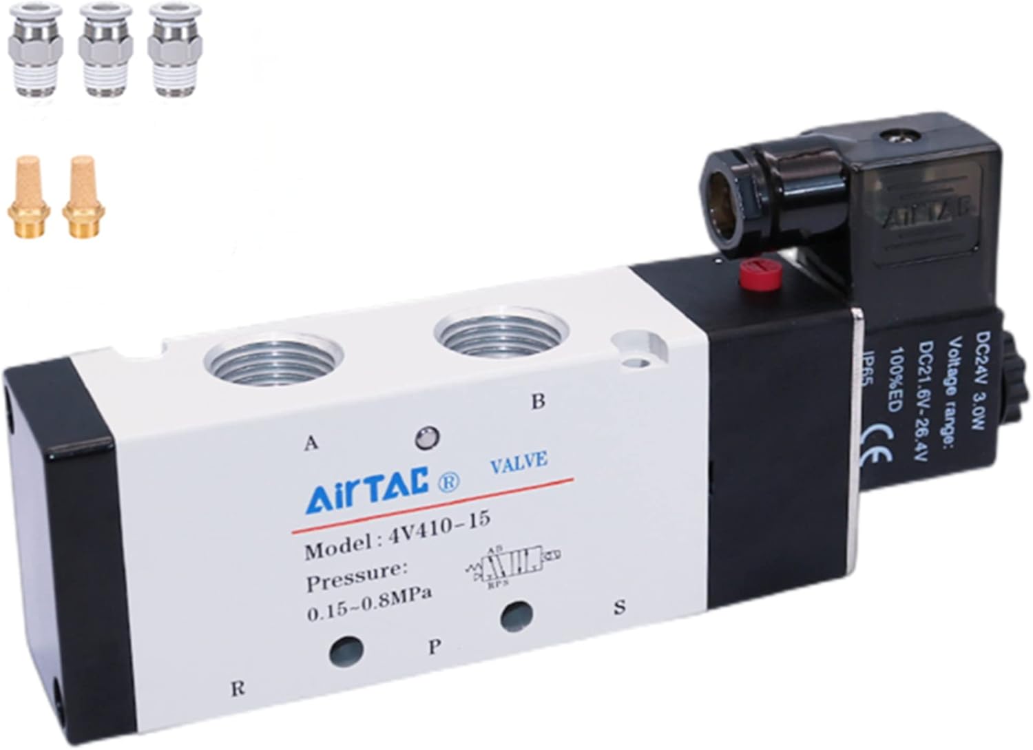 Pneumatic Electric Solenoid Air Valve 4V410-15 AC 220V 2 Position 5 Way Pt 1 2 heschen elettrovalvola viene applicata ampiamente al sistema pneumatico e il meccanismo, come l' industria tessile, industria leggera e industria chimica, etc. Tensione Bobina: AC 220 V Free delivery and returns on all eligible orders. Shop Heschen Electrical Pneumatic Solenoid Valve, 4V410-15, 220VAC 6.0VA, PT1/2'', 5 Way 2 Position, CE, IP65 Può essere generalmente usato per guidare la direzione del flusso d' aria del cylinde meccanico double-acting. 'Dimensione porta: PT1/2