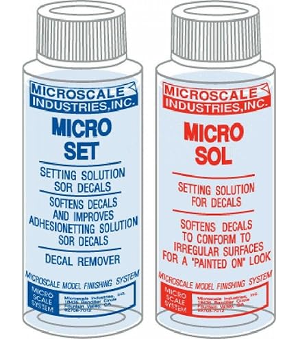 Buy Decal Setting Solution-Micro Scale Micro Sol 102 + Micro Set 101 Package Decal at . ... Decal Setting Solution-Micro Scale Micro Sol 102 + Micro Set 101 Package Decal . 5 stars out of 1 review (5.0) | 1 rating. At a glance. Brand META_AOT Per ottenere i migliori risultati, applicare prima micro sol per preparare la superficie e migliorare l'adesivo. I risultati più sorprendenti in luoghi apparentemente impossibili sono possibili perché Micro Sol rende effettivamente la decalcomania parte della superficie verniciata. Microscale Decals: N META_AOT Decal Setting Solution-Micro Scale Micro Sol 102 Micro Set 101 Package Decal B01lxz03w9 Amazon Us Micro Tach Solo Ammorbidisce completamente la decalcomania, permettendole di drappeggiare sulla superficie del modello, adattandosi perfettamente alle irregolarità superficiali senza distorsioni. Caratteristiche Soluzione di impostazione per decalcomanie Ammorbidisce le decalcomanie e migliora l'adesione Rimozione decalcomaniaLo SKU Trainz per questo articolo è P11588010