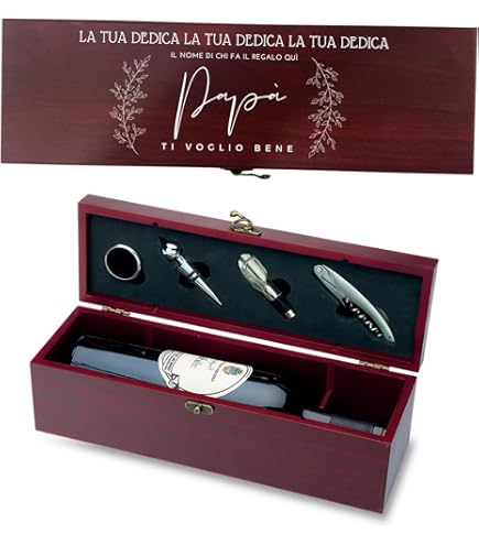 personalizzata targa famiglia cuori pendenti nomi misshobby Dimensioni: (Box) 27 x 22 x 7,5 cm; Peso totale 1,5 kg; Materiali: Legno e acciaio inox Bel regalo per amanti del vino in occasioni speciali di festa, come un compleanno o a Natale. Set 10 utensili da vino: cavatappi a leva (1), tappo bottiglia (4), termometro (2), taglia pellicola (5), aeratore (8), anello anti goccia (7) e versatore (6); Incluse 2 viti di ricambio per l?apribottiglie (3) Un gadget unico e smart per barman incalliti, ma anche amatori alle prime armi: per un vero e proprio wine tasting direttamente a casa! Cartine Corte AMAVEL Set 10 Accessori Per Vino Da Sommelier, Confezione Design In Legno Con Incisione Per Il Miglior Papà, Idea Regalo Originale Festa Del Papà, Kit Degustazione Professionale Per Aperitivo : Amazon.it: Casa Cavatappi Sommelier Che sia vino rosso o bianco, spumante o champagne, nessun appassionato potrà resistere al fascino di questa pregiata valigetta avente tutto il necessario per un’incredibile esperienza di gusto!