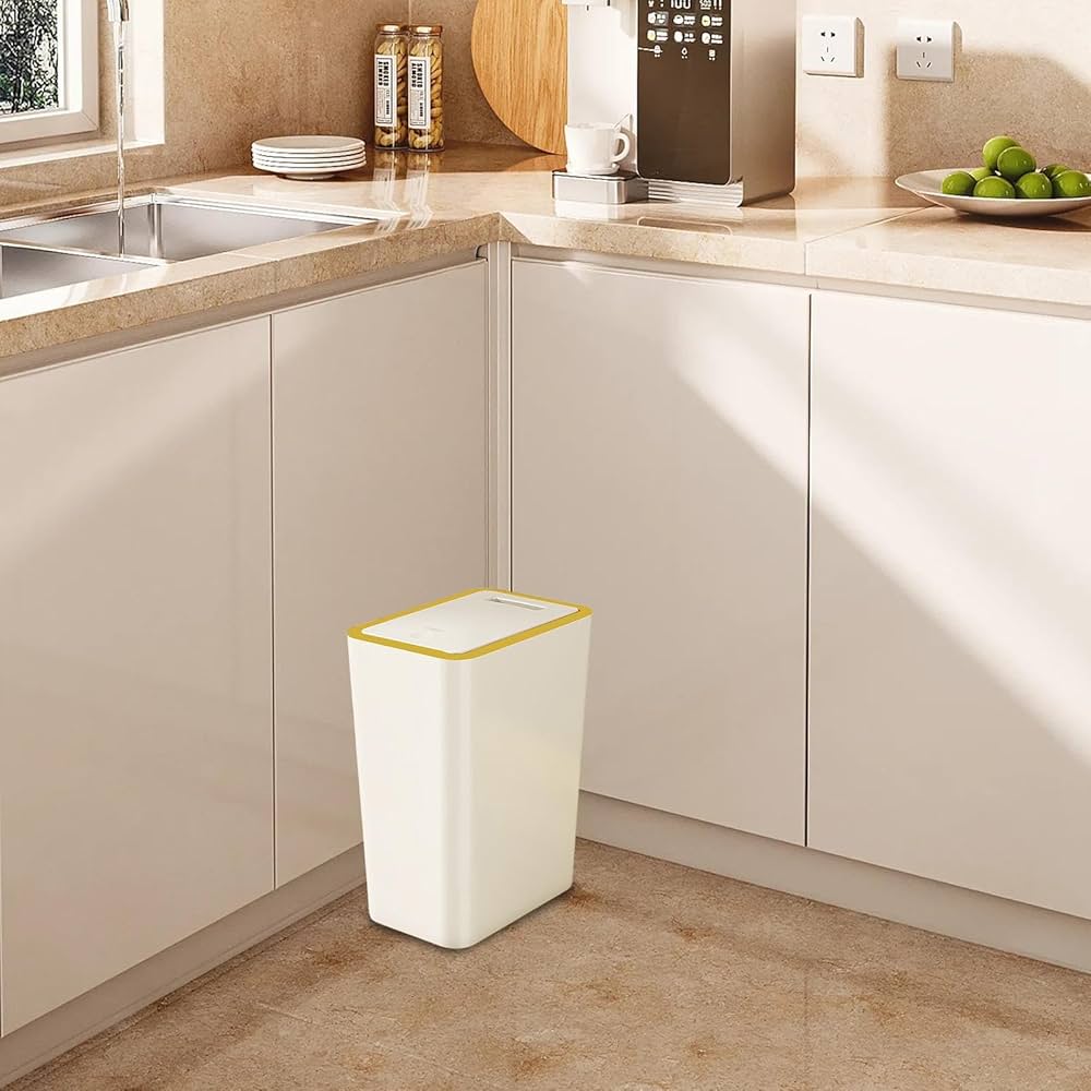 Pattumiera Con Bordo Superiore A Pressione, Sottile, Moderno, Cestino Della Spazzatura Portatile, In Plastica, Bianco, Per Riciclaggio, Camera Da
