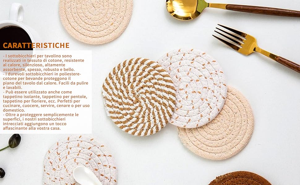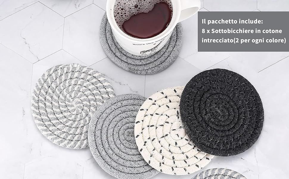 Grazie per la comprensione. Caratteristiche: Materiale: cotone Diametro: 11 cm Spessore: 6 mm Colore: bianco, grigio scuro, bianco latte, grigio La confezione include: 10 pezzi - Sottobicchieri in cotone per bevande (2 pezzi bianchi, 2 pezzi grigio scuro, 3 pezzi bianco latte, 3 pezzi grigi) Garanzia post-vendita: Se hai domande, ti preghiamo di contattarci in tempo e risponderemo alle tue domande il prima possibile. 10 Pz Sottobicchieri per Bicchieri, Sotto Bicchieri da Tavola, Rotondi Sottobicchieri per Bevande , Sottobicchieri Intrecciati in Cotone , Sottobottiglie da Tavolo, Sottobicchiere per Bevande Tazze Sotto Bicchieri Led 10 Migliori Sottobicchieri Sottobicchieri Per Bevande In Italia Sotto Bicchieri Da Tavola Elevato assorbimento d'acqua: i sottobicchieri in vetro hanno forti proprietà di assorbimento dell'acqua e isolamento termico, che riducono il rumore delle tazze posizionate sul tavolo e assorbono l'acqua che schizza nella tazza in pochi secondi, rendendo tutto in ordine sul tavolo. Adatti a tutti i tipi di bevande calde e fredde, adatti a bicchieri, tazze da caffè, bottiglie di olio, vasi, vasi di fiori, ecc. Il colore potrebbe essere leggermente diverso dall'immagine online a causa delle impostazioni del colore del monitor, fare riferimento al prodotto effettivo. Protegge il piano del tavolo: i sottobicchieri in vetro sono strettamente intrecciati e forniscono una superficie stabile per il piano del tavolo, che può impedire alle tazze di scivolare bene, impedire al tavolo di sporcarsi e proteggere la superficie da macchie di grasso e acqua, danni da calore o graffi. Quali sono i vantaggi dei nostri sottobicchieri? 1. Il set di sottobicchieri da tavolo è intrecciato in cotone di alta qualità, il materiale è morbido, confortevole, robusto, con lunga durata e stabilità. 2. I sottobicchieri per bicchieri hanno forti proprietà di assorbimento dell'acqua e isolamento termico, che riducono il rumore della tazza posizionata sul tavolo e gli schizzi d'acqua all'interno della tazza possono essere assorbiti in secondi. 3. Il sottobicchiere rotondo può proteggere la superficie del tavolo da macchie di grasso e acqua, danni da calore o graffi. 4. Lavabile, facile da pulire e manutenere quotidianamente, sembra nuovo dopo la pulizia. 5. Adatto a tutti i tipi di bevande calde e fredde, adatto a bicchieri, tazze da caffè, bottiglie di olio, vasi, vasi di fiori, ecc.