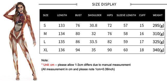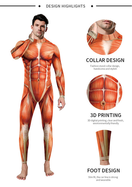 QHYXT Tute Da Donna Per Carnevale Festa A Tema Costume Spaventoso Organi Del Corpo Umano Muscolo Scheletro Tessuto Stampa 3D Cosplay Catsuit Tuta Scuola Strumento Didattico,A-L : Amazon.it: Moda