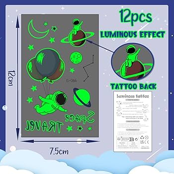 Questi sono tatuaggi temporanei rimovibili per bambini! Tatuaggi Per Bambini Gratis CHARLENT Tatuaggi Spaziali Luminosi Per Bambini - 14 Fogli Che Si Tatuaggi Bambini Indossalo come una rockstar! Nota: Non applicare su pelle sensibile o danneggiata, sulla pelle intorno agli occhi e sulla pelle soggetta ad allergie Avviso di sicurezza evitare gli occhi buio illuminano tattoo galleria tatuaggio Facili da condividere, anche se ci sono molte feste, puoi avere un tatuaggio diverso con gli altri. ⚡14 fogli di Tatuaggi Galattici per Ragazzi e Ragazze -- 100 tatuaggi luminosi in totale in 14 fogli da includere facilmente in una borsa regalo per feste. Descrizione prodotto Descrizione del prodotto Il tuo bambino vuole un tatuaggio? Non preoccuparti mamma! ⚡Adesivi per Tatuaggi Spaziali Luminosi per Bambini -- I nostri tatuaggi spaziali sono sicuri per i più piccoli, ogni tatuaggio è realizzato con materiale di quantità standard e carta verde. Aggiungi un tocco di divertimento extra a una festa o un evento per bambini con i tatuaggi Charlent. Contenuto della confezione: 14 fogli di tatuaggi temporanei con elementi spaziali È perfetto per: ► Festa spaziale ► Feste di compleanno ► Bomboniere, sacchetti regalo, articoli per feste per bambine ► Decorazioni fai da teFacile da applicare: Rimuovi la plastica protettiva. Caratteristiche: Tatuaggi temporanei luminosi CHARLENT Space per bomboniere per feste di bambini. Inumidisci il tatuaggio con un panno tiepido o tienilo sotto l'acqua corrente per circa 20 secondi. Rimuovi la carta. I tatuaggi si lavano facilmente con acqua e sapone, quindi puoi rimuoverli in qualsiasi momento dopo l'applicazione. ⚡Il set include oltre 100 stili di tatuaggi spaziali luminosi per bambini, bomboniere per feste -- Tatuaggi temporanei super adorabili e luminosi a forma di pianeta. ⚡Qualità Premium, Impermeabili e Resistenti al Sudore: questi tatuaggi unici durano in genere circa 3-6 giorni. I tatuaggi temporanei per bambini sono i migliori bomboniere e riempitivi per sacchetti regalo di sempre per qualsiasi tipo di celebrazione!
