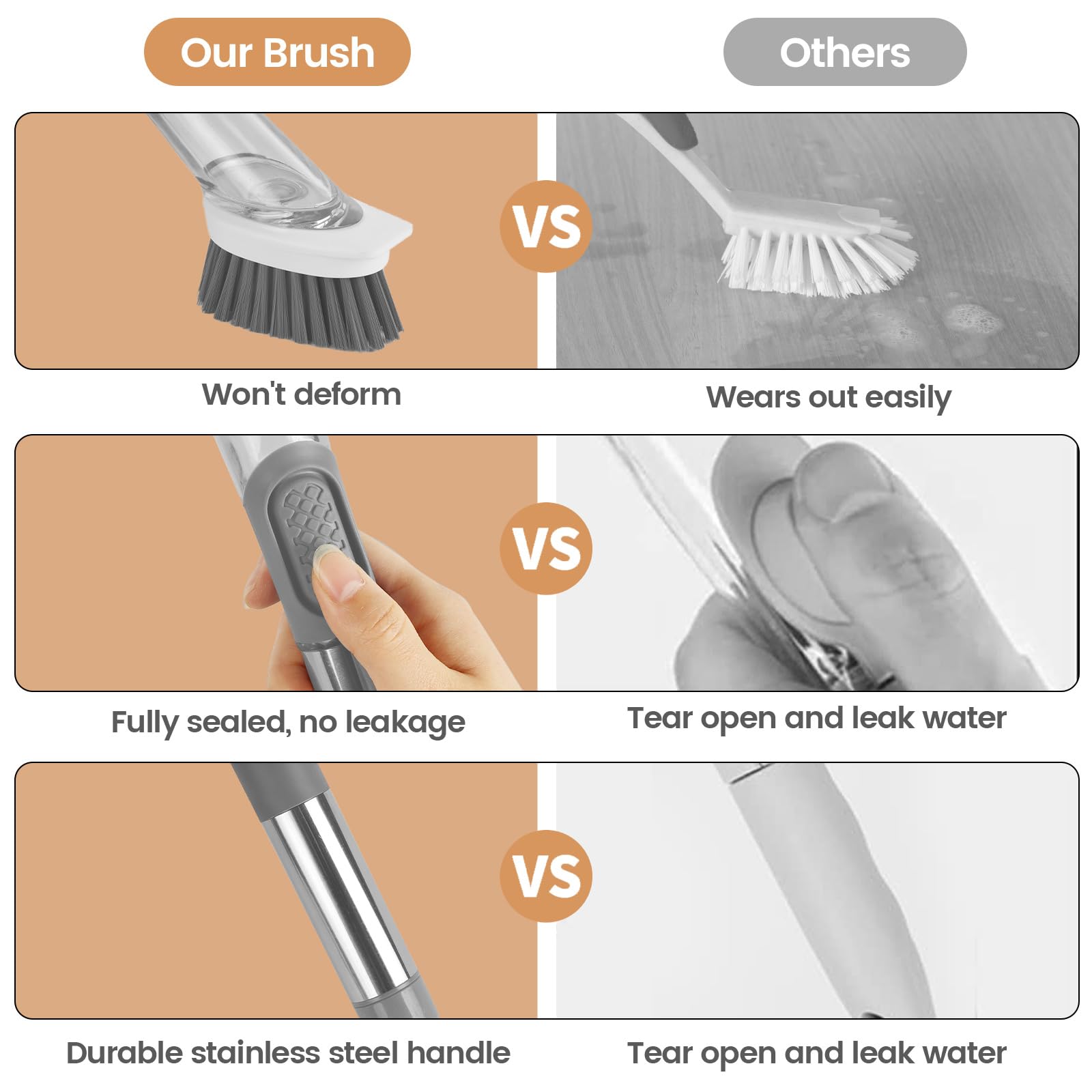 Spazzola Per Piatti, Spazzola Per La Pulizia, Dispenser Per Detersivo, Spazzola Ricaricabile, Riempibile Con Detersivo, Nero, Spugna, Spazzola 2 In 1