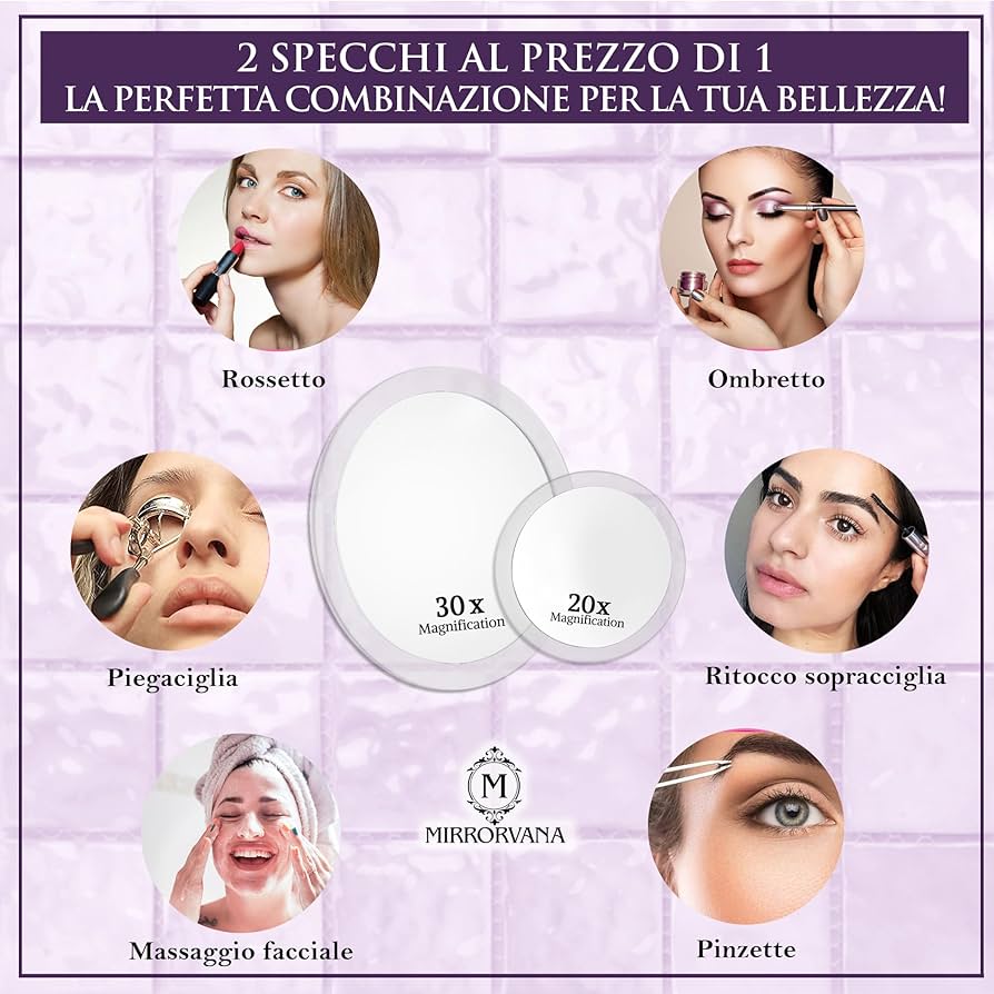 Specchio ingranditore 30X : l'ingrandimento 30x è inimmaginabile, devi essere a 5 pollici di distanza dallo specchio per iniziare a usarlo, se ancora non riesci a vedere devi avvicinarti un po'; Inoltre, puoi usarlo per controllare le imperfezioni dopo il Garanzia di 1000 Giorni: è coperto da una garanzia di lunga durata per la tua tranquillità; ci pensiamo noi! Specchio Portatile: piccolo, leggero e perfetto per i viaggi. Specchio 10x Specchio Ingrandente Rotondo Con LED - Ingranditore 5X & 3X Per Il Trucco Rasatura Da Appoggio Specchio Rotondo Ventose Potenti: è dotato di ventose più morbide e resistenti per una presa salda su superfici lisce come marmo e piastrelle. Ingrandimento 30X: scopri uno zoom potentissimo per vedere ogni dettaglio del tuo viso, perfetto per truccarsi e pinzettare.