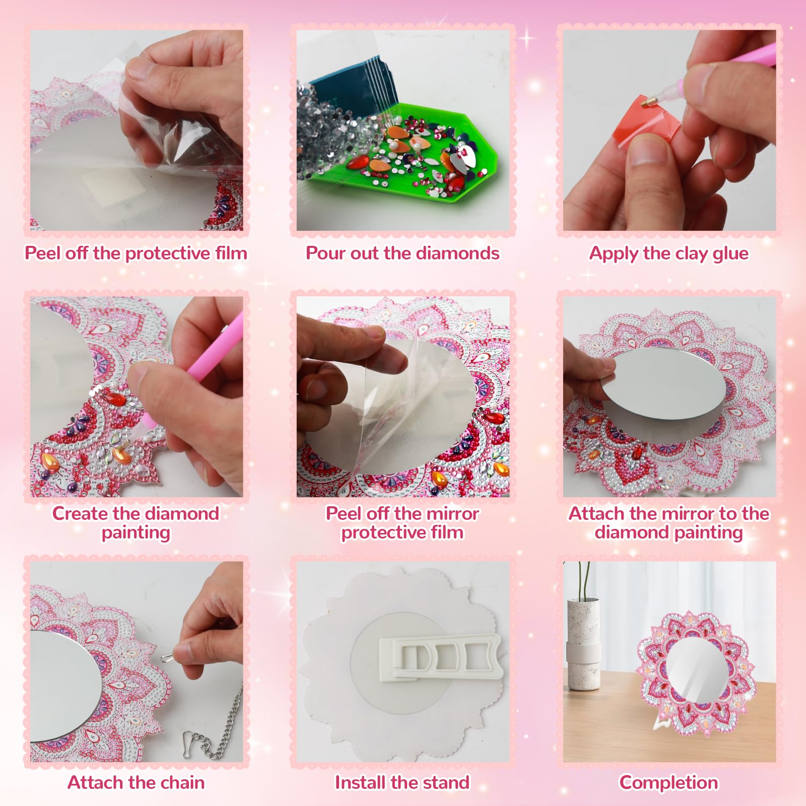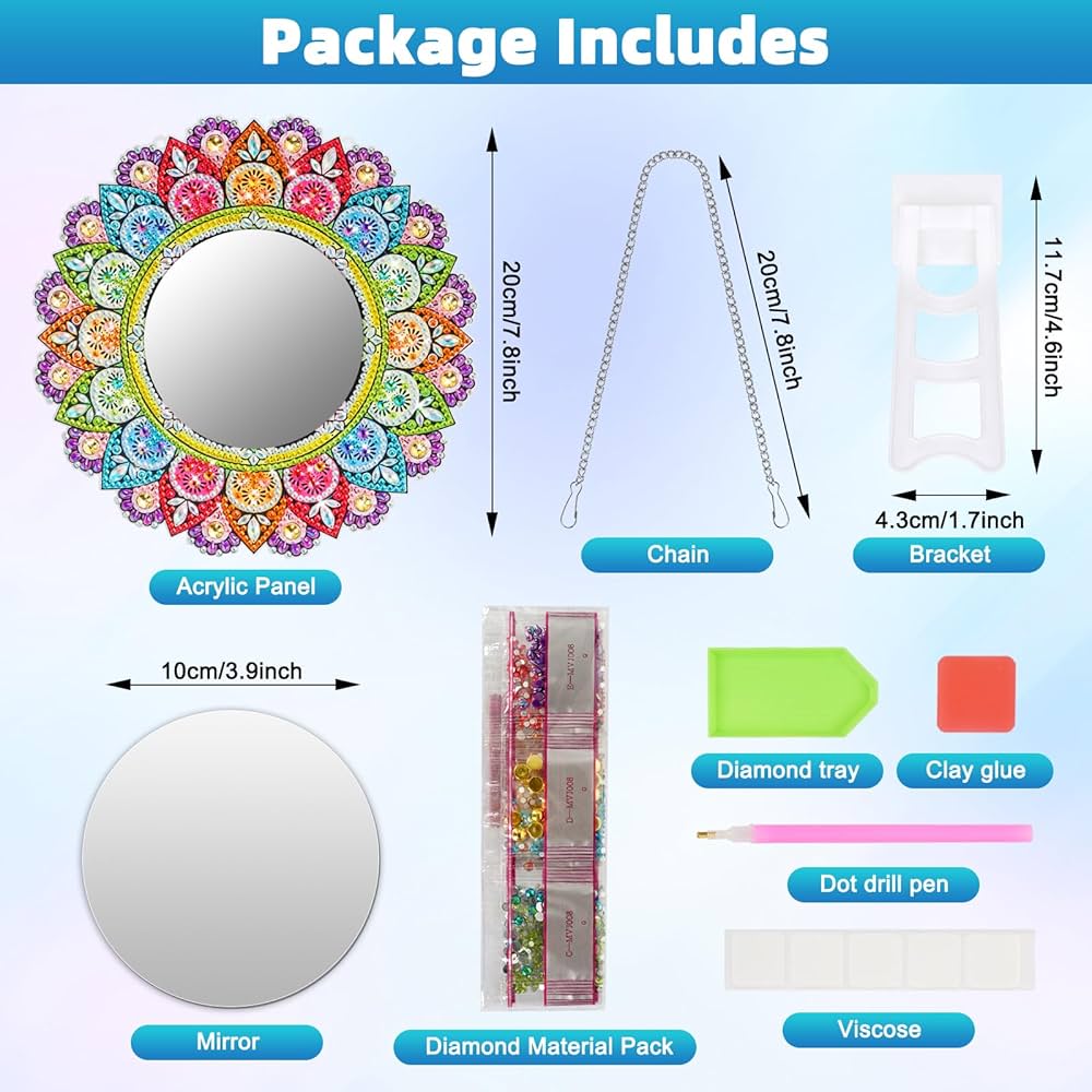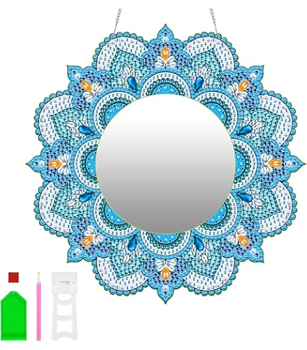 WuGU Specchio Per Pittura Diamante, Specchio Per Pittura Con Diamanti Fai Da Te, Specchio Pittura Diamante Kit, Mandala Specchio Trucco Regalo Per