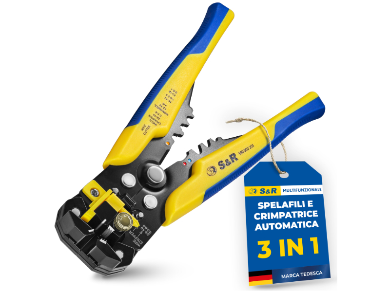 Strong, durable powder-coated steel frame Jaw action prevents crushing or cutting even the finest wires Silverline Automatic Wire Strippers 175mm. Product Code: 934113. Barcode: 5055058103406. Discover the robust Silverline Automatic Wire Strippers, engineered for precision and durability. This tool is perfect for handling a variety of wire sizes with ease and accuracy. Exceptional Features Spelacavi Recupero Rame Spellafili Di Precisione Da 18 Cm, Spelafili Automatico, Tagliacavi Spelafili Elettricista