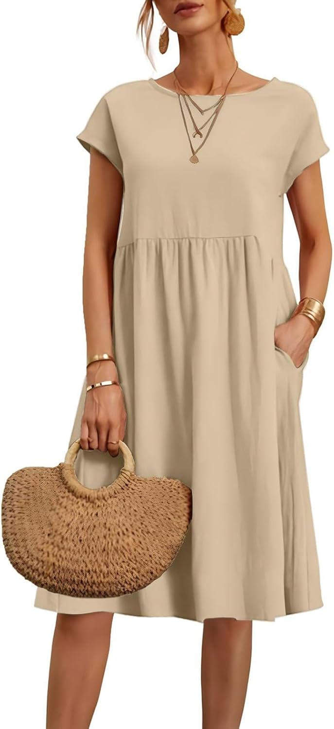 Generico Abito Da Spiaggia A Maniche Corte In Cotone Casual E