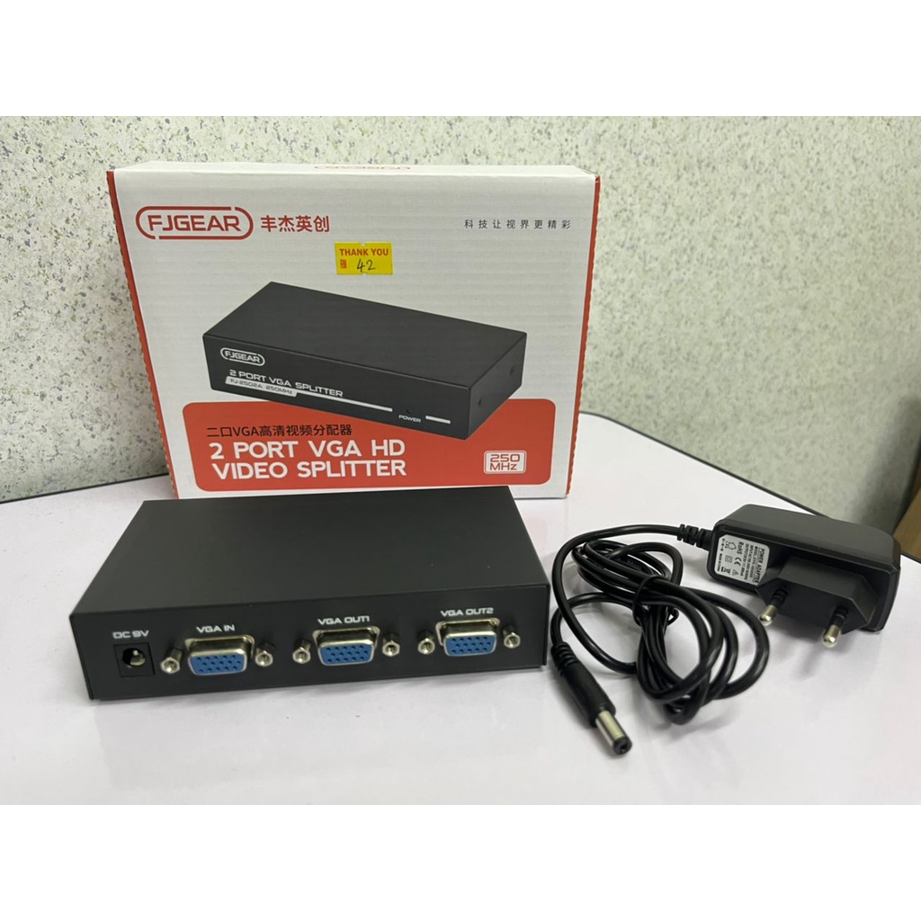 2-Port VGA Splitter (350MHz) VS92A. One video input to 2 video outputs; Superior video quality - 1920 x 1440@60Hz ... 1x 2-Port Video Splitter ; 1x Power Adapter; 1x Rack Mounting Kit with Screws (VS92A-MA only) ... Cascadable to 3 levels - provides up to Vs92a Splitter IOGear 2-Port VGA Video Splitter For Use With Analog Displays Mdp Vga 2-PORT VGA VIDEO SPLITTER (350 ACCS