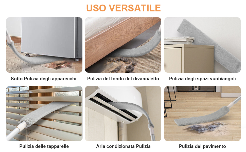 Il morbido peluche previene graffi o danni alle superfici dei mobili. 【Facile da usare】Lo straccio per la polvere riduce il carico delle faccende domestiche e può essere facilmente smaltito dopo l'uso. Spolverino: questa ricarica per spolverino ha una consistenza confortevole e morbida, che può facilmente spazzare via la polvere galleggiante dalle fessure del computer, eliminando la necessità di stracci ruvidi, rigidi, umidi e acquosi e non danneggiano Swiffer Xxl 40 Pezzi Panni Cattura Polvere Spolverino Mobili Piumino Per Spolverare Con 1 Manico Cattura Polvere Pavimenti Per Casa Scuola Ufficio (Bianco Swiffer Duster 【Comoda maniglia】Il set per spolverino presenta un design pieghevole ed ergonomico che rende la maniglia comoda da tenere in mano. 【Applicazione versatile】Ideale per pulire angoli difficili da raggiungere, scaffali, automobili, persiane, dispositivi elettronici, divani, soffitti, crepe nei muri, vetrine, pianoforti, tastiere di laptop, peli di animali domestici e altro ancora. Sostituirlo con una nuova confezione di ricarica per riutilizzarlo. Il design del gancio consente uno stoccaggio verticale salvaspazio. 【Materiale affidabile】Lo spolverino di alta qualità è realizzato in materiale di fibra non tossico e innocuo con peli di fibra morbidi e soffici che non sono facili da staccare.