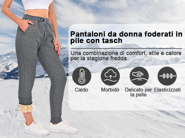 per creare un look casual e alla moda. Pantaloni da donna in pile Così potrete godere di un calore accogliente e avvolgente durante il vostro tempo libero mentre indossate i pantaloni. Pantaloni da jogging da donna foderati in pile, vita elastica, coulisse in vita regolabile a piacere, vestibilità comoda Può essere utilizzato per la vita quotidiana, il tempo libero, il lavoro, le vacanze, ecc. Descrizione prodotto Yuson Girl Pantaloni Tuta Donna Pantaloni Tuta Donna CheChury Sportivi Pantaloni Termici Pantaloni Pantaloni Pilates Donna Esterno in morbido misto cotone e foderato in sherpa termico. Materiale morbido e caldo: Questo pantaloni donna invernali è realizzato in tessuto di cotone di alta qualità, con una comoda fodera in pile di agnello, felpata e spessa, adatta per l'autunno e l'inverno e anche super calda nella neve. Design: Foderato in pile ed elastico in vita Yuson Girl Pantaloni Tuta Donna Invernali Pantaloni Sportivi Fodera in Pile Termico Pantalone Felpati Caldi Vita Alta Pantaloni Comodi Fleece Jogger Corsa Sci Fitness con Tasches I pantaloni da jogging da donna foderati con tasche rendono l'allenamento più confortevole. Super confortevole e caldo, perfetto per attività indoor o outdoor. Due tasche laterali tengono le mani al caldo e custodiscono cellulare, chiavi,portafoglio e altro ancora. Pantaloni Felpati in Pile-Stagione: Autunno, Inverno Regali caldi: I pantaloni sportivi invernali da donna sono perfetti come regali di Natale, Capodanno, Ringraziamento e compleanno. Pantaloni da donna in pile: Design termico foderato in sherpa, per tenervi al caldo nel freddo inverno, vita elastica e coulisse regolabile per una vestibilità confortevole, design semplice ma sempre alla moda, due tasche laterali oblique e design a coste alla caviglia, rendono i pantaloni in pile più termici e antivento, tinta unita classica, semplice ma elegante. Abbinati a una felpa con cappuccio, a un maglione o a una camicia, questi pantaloni termici possono passare da casa alla palestra a una giornata casual, con un semplice cambio di accessori. I pantaloni casual da donna sono perfetti per l'autunno e l'inverno. Materiale: Cotone, Poliestere, Pile Stile: Casual , Sport La caviglia elastica a coste mantiene la caviglia calda e protegge dal freddo vento invernale.