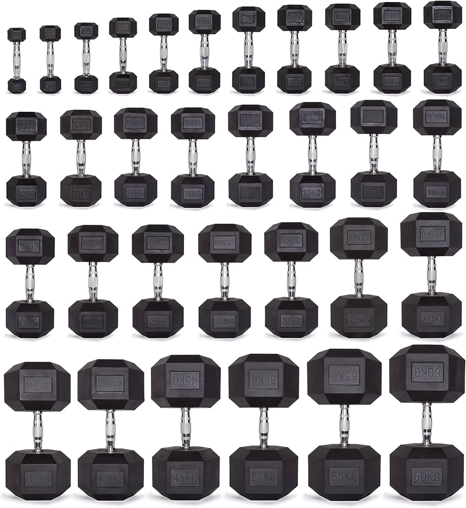 C.P.Sports - Manubri Esagonali In Gomma, 1 Kg – 80 Kg, Con Rivestimento