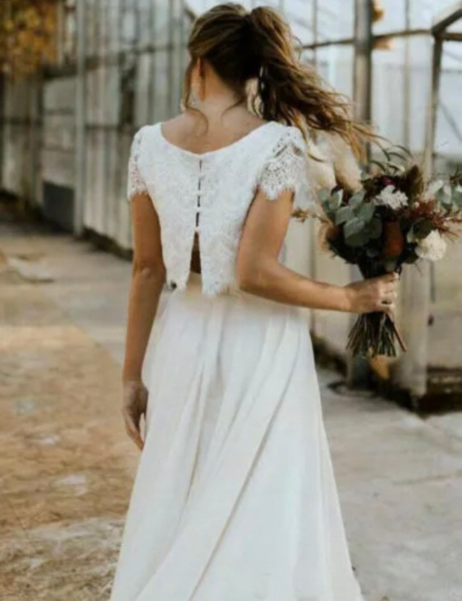 Abito Da Sposa Con Festone Lusso Senza Maniche Semplice In Pizzo
