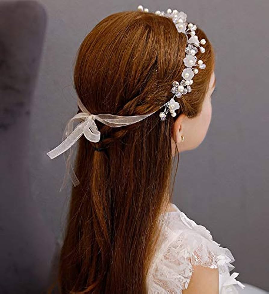 Una bellissima coroncina di fiori per bambine ornata da splendidi fiori in tessuto color blush e avorio su un cerchietto avvolto da un nastro Accessori per capelli da festa: il nostro copricapo da sposa per sposa è adatto per matrimoni, balli studenteschi, feste, cerimonie, festival, qualsiasi occasione speciale o uso quotidiano. Questo accessorio per capelli da sposa non sbiadisce. Dimensioni: la corona per capelli da sposa misura circa 36 x 3,5 cm e pesa 21 grammi. Regalo ideale: la nostra fascia per capelli da sposa con perle è una buona scelta per regali di festival o di compleanno, lega ambientale, mantiene il colore brillante; fatto a mano, non cadrà; I fiori artificiali impreziosiscono, belli e generosi. Regalo Comunione Bambina Fascia Per Capelli Da Sposa Con Fiori Bianchi Corona Regali Per La Prima Comunione Materiale: questo accessorio per capelli da sposa in cristallo è realizzato con strass, leghe, perle, perle e leghe ecologiche, mantiene il colore brillante, ben fatto e rimane al sicuro tra i capelli.