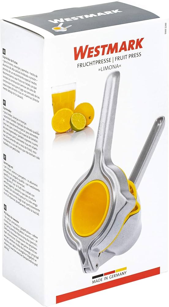 Le lamelle sulla cupola sono robuste e ben definite per penetrare nella buccia della frutta quando si chiude il manico a pinza, estraendo un succo particolarmente ricco di vitamine. Strizza Insalata Westmark Spremiagrumi, Alluminio Con Rivestimento Adatto All Alimentare Plas 395846449005 Spremi Limone Vantaggi: Spremute facili e veloci Infatti il nostro motto è: Westmark - Rendilo più semplice! IN STOCK: Westmark - Spremiagrumi, colore: Argento, 4004094500060 al miglior prezzo. Consegna rapida in tutta Italia Spremiagrumi per preparare spremute e succhi di limone, arancia e pompelmo (di piccole dimensioni) Questo prodotto Westmark vi aiuta a preparare cibi sani per una dieta ricca di vitamine. Spremute rapide e facili Spremiagrumi Limona Con lo spremiagrumi Limona potrete preparare deliziose spremute e succhi di limoni, arance e piccoli pompelmi in modo semplice e veloce. Facile da utilizzare, Per frutta non trattata, Facili spremute grazie al manico a pinza Facile da pulire Per questo prodotto Westmark si raccomanda il lavaggio a mano. Affidabili utensili da cucina Made in Germany Le parole spremere + denocciolare ci sono famigliari. Per tale ragione, si consiglia l'utilizzo di frutta non trattata. Da decenni produciamo utensili da cucina che offrono una funzionalità a lunga durata e sono apprezzati sia dagli amateur che nelle cucine professionali. Made in Germany Siamo nel mercato della manifattura di prodotti per la casa e la cucina dal 1956! Questo prodotto è uno di questi. Made in Germany: Facile da lavare a mano, Non lavabile in lavastoviglie Contiene: 1x Westmark Spremiagrumi, Con confezione, Dimensioni: 23,7 x 11,6 x 6,9 cm, Materiale: Alluminio con rivestimento adatto all'uso alimentare/Plastica (PP), Senza BPA, 50002260