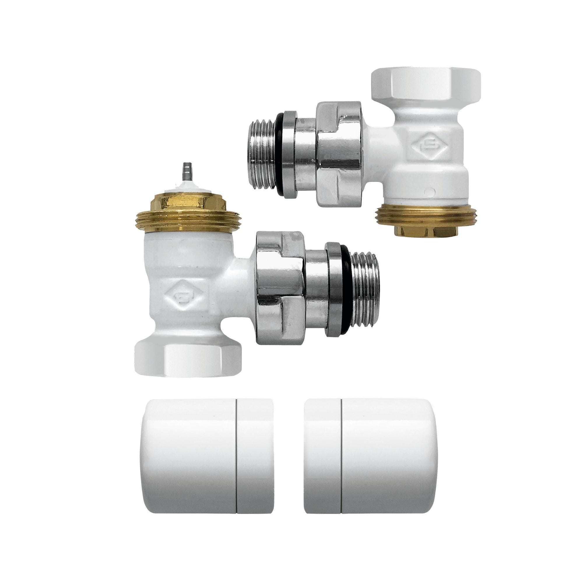 Kit valvole termostatiche manuali a squadra invertita 1/2 in ottone nichelato bianco Per montare la testa facilmente, posizionare sulla posizione max prima di avvitare Kit di collegamento completo: 1.valvola termostatica 2.testa termostatica 3.detentore 4.rubinetto di scarico acqua 5.sfiato aria 6.chiave quadra Rubinetto Radiatore Rubinetto per asciugamano e radiatore TermostaticoManuale Diverse forme disponibili a seconda della configurazione dell'installazione SquadraDestra Squadra Invertita Testa termostatica filettatura 30x150 Valvole Radiatori Kit Termostatico A Squadra Completo Per Tubi Ferro Diam. 1/2" Caleffi Termoarredo SANREMO Collegamento del rubinetto e gomito di regolazione = Gomito maschio femmina 1/2 (1/2) con dado girevole auto-sigillante lato apparecchio di riscaldamento Finitura nera opaca