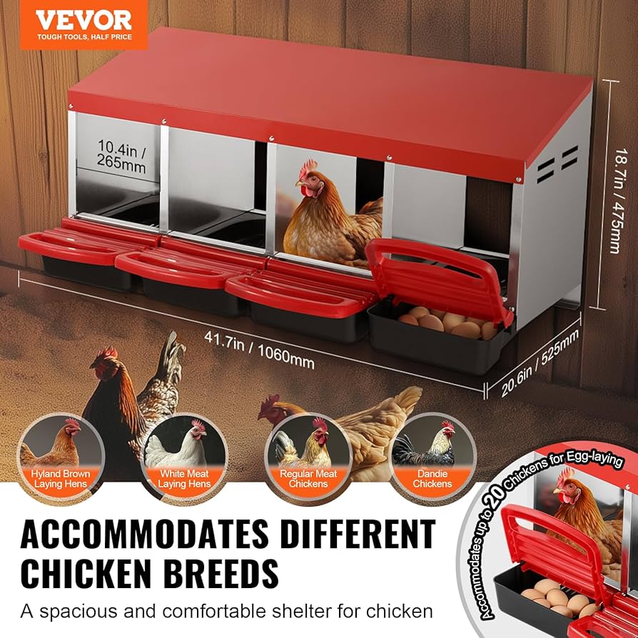 VEVOR Nido Per Polli 1060 X 525 X 475mm Nido Per Galline A 4 Scomparti Stabile Resistente Alla Corrosione Con Nidi Inclinati Fori Sul Fondo E Piattaforma Di Riposo Adatto A Diverse Razze Di Polli 85148784