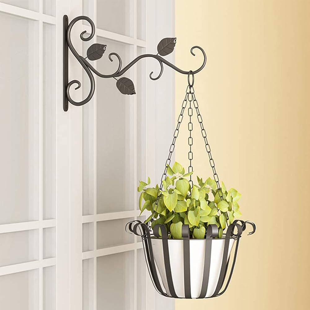 Exbrith 4 Pezzi Parete Staffa Per Pianta, 11 X 7.8 Cm, Staffe A Muro In Ferro Battuto, Gancio Per Piante Da Appendere Alla Parete Con Viti, Gancio Per Fioriera Da Parete Per