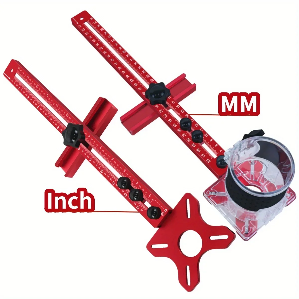 Base Per Fresatrice Professionale Staffa Per Scanalatura Per Fresatura Router, 4 In 1, Staffa Universale In Alluminio Per Banchi Per La Lavorazione Del Legno, Maschere Per Fresatura Del Legno (scala In Mm Rifilatore Per Legno Strumento professionale per la lavorazione del legno: il supporto per scanalature della fresatrice 4 in 1 è uno speciale strumento con durezza crescente, progettato per la fresatura rapida di scanalature rotonde, il taglio di blocchi rotondi, l'incisione di centri rotondi e la misurazione di angoli retti. Nome del prodotto · staffa circolare per fresatura ; Materiale · lega di alluminio ; Colore · rosso (colore scuro chiaro casuale, non accettare il colore specificato Esalta la tua abilità artigianale con i nostri utensili professionali per la lavorazione del legno, che garantiscono precisione e versatilità nella lavorazione. Versatile: la base in lega di alluminio rimovibile è un componente versatile che può essere montato su una macchina rifilatrice come base autonoma o abbinato a un supporto per scanalature per la fresatura assistita dei bordi e il taglio di scanalature rotonde. Ampia applicazione: progettato per un'ampia gamma di applicazioni, il nostro innovativo utensile per la lavorazione del legno è realizzato su misura per una vasta gamma di materiali per pannelli, tra cui pannelli in fibra a media densità, pannelli decorativi e pannelli per la lavorazione del legno pregiato. Materiale di alta qualità: il righello da falegnameria è realizzato in lega di alluminio ispessita di qualità superiore, con un design adattabile che garantisce una maggiore stabilità durante le attività di lavorazione del legno. Design staccabile: la staffa con scanalatura di fresatura è dotata di tre sezioni modulari e di un design pratico e a sgancio rapido, che può essere rapidamente montato o smontato.