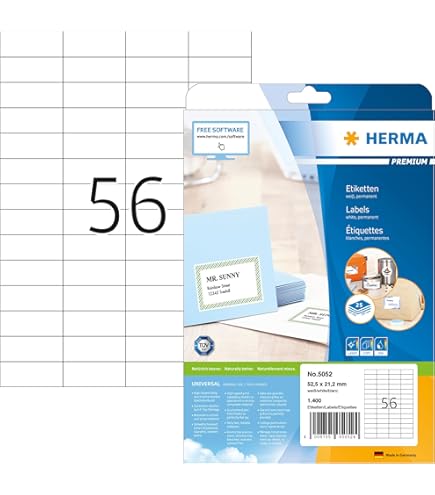 Descrizione prodotto Printation - Rendiamo la qualità accessibile! Proprietà 25 fogli di carta speciale bianca di alta qualità Etichette di qualità prodotte in Germania! Etichette universali bianche incollate in modo affidabile su carta, cartone, vetro e plastica – Etichette universali prodotte in Germania sicuro nel passaggio della stampante Etichette autoadesive universali bianche stampabili permanenti – 52,5 x 16,9 mm bianco su supporto DIN A4, 25 fogli per confezione Etichette universali Printation Etichette adesive in bianco stampabili per tutte le occasioni. Stampa chiara e protezione ottimale del dispositivo, etichette autoadesive da personalizzare, scrivere/stampare e incollare – per tutte le stampanti e fotocopiatrici comuni Qualità made in Germany. Stampante Adatto a stampanti laser, stampanti a getto d'inchiostro, dispositivi multifunzione e fotocopiatrici Printation Etichette adesive per computer, da stampare autonomamente con stampante a getto d'inchiostro, stampanti laser e fotocopiatrici, colore bianco, universali Adatti per stampanti inkjet, laser, laser a colori e fotocopiatrici. Le etichette in carta Printation sono universalmente applicabili in molte forme e colori. Adatte per indirizzare lettere e pacchi, etichettare prodotti, etichettare cartelle e strutturare sistemi di archiviazione. Adesive in modo permanente su carta, cart Made in Germany Le etichette PRINTATION sono prodotte interamente in Germania. Rivestimento superficiale per una qualità di stampa ottimale Stampa Etichette Adesive Printation Fogli A4 Per Stampante Con Etichette Adesive 210 X 148 Mm, 50 Etichette Per Spedizione A5, 25 Fogli A4 Con 2 Etichette A5 Per Foglio, Bianche, Autoadesive Per Stampanti Laser E Inkjet 1x2 Etichette Adesive Herma Adatte per indirizzare lettere e pacchi, etichettare prodotti, etichettare cartelle e strutturare sistemi di archiviazione. sono caratterizzate da una produttività senza problemi durante il processo di stampa Una piccola selezione di formati utilizzati di frequente. Informazioni sul prodotto Formato del supporto Etichette autoadesive e permanenti su fogli DIN A4