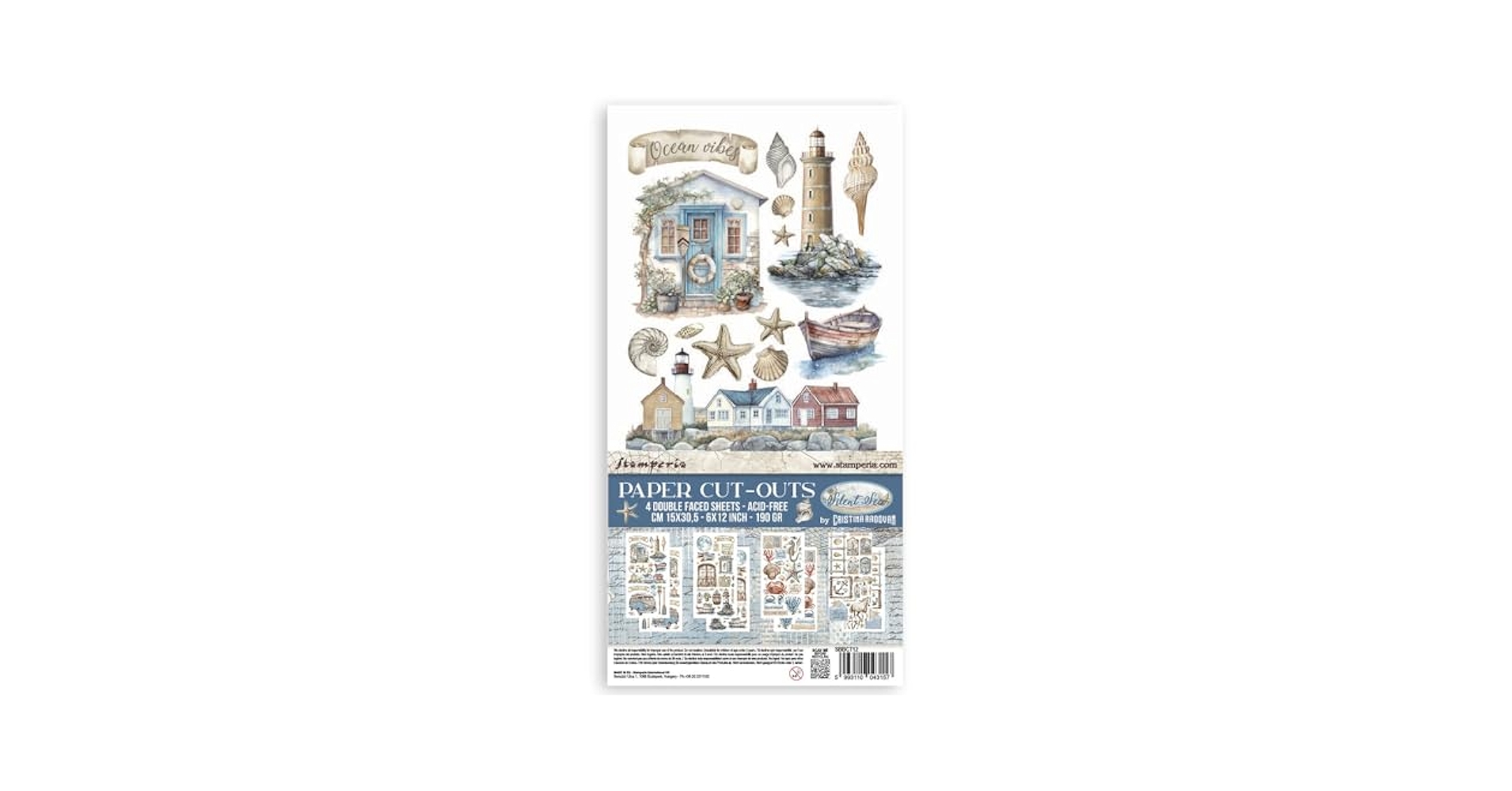 Stamperia - Scrapbook Sheets For Scrapbooks, Albums, Card Making, Bullet Journals And More, Acid Free, Double-Sided, Perfect For Crafts And Gifting (Silent Sea, 6 Cards) (30.5 X 31.5cm