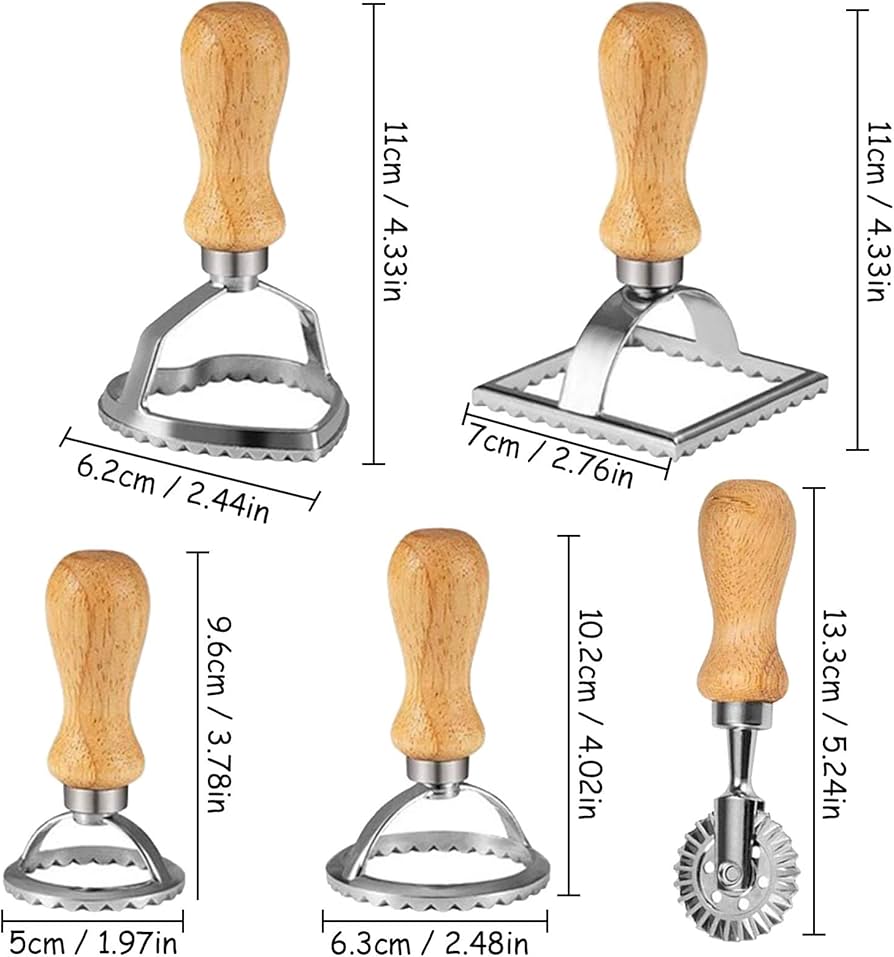FGX 3 Pezzi Stampo Ravioli, Timbri Per Ravioli, Acciaio Inox, Formine Per Biscotti, Quadrati E Cerchi, Con Manico In Legno E Bordo Scanalato, Per Ravioli, Per Ravioli, Empanadillas O Biscotti