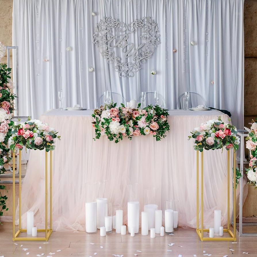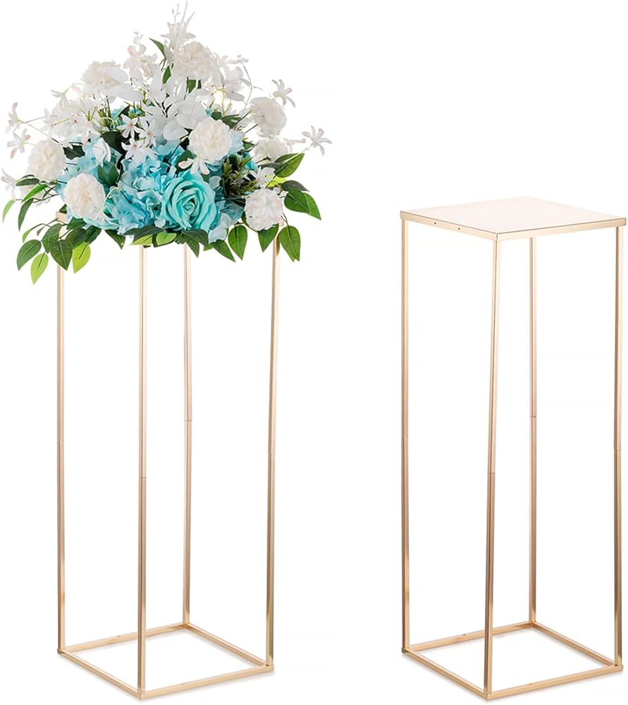 Centrotavola Nozze Stand Fiori Oro - 3 Pezzi Vasi A Colonna In Metallo