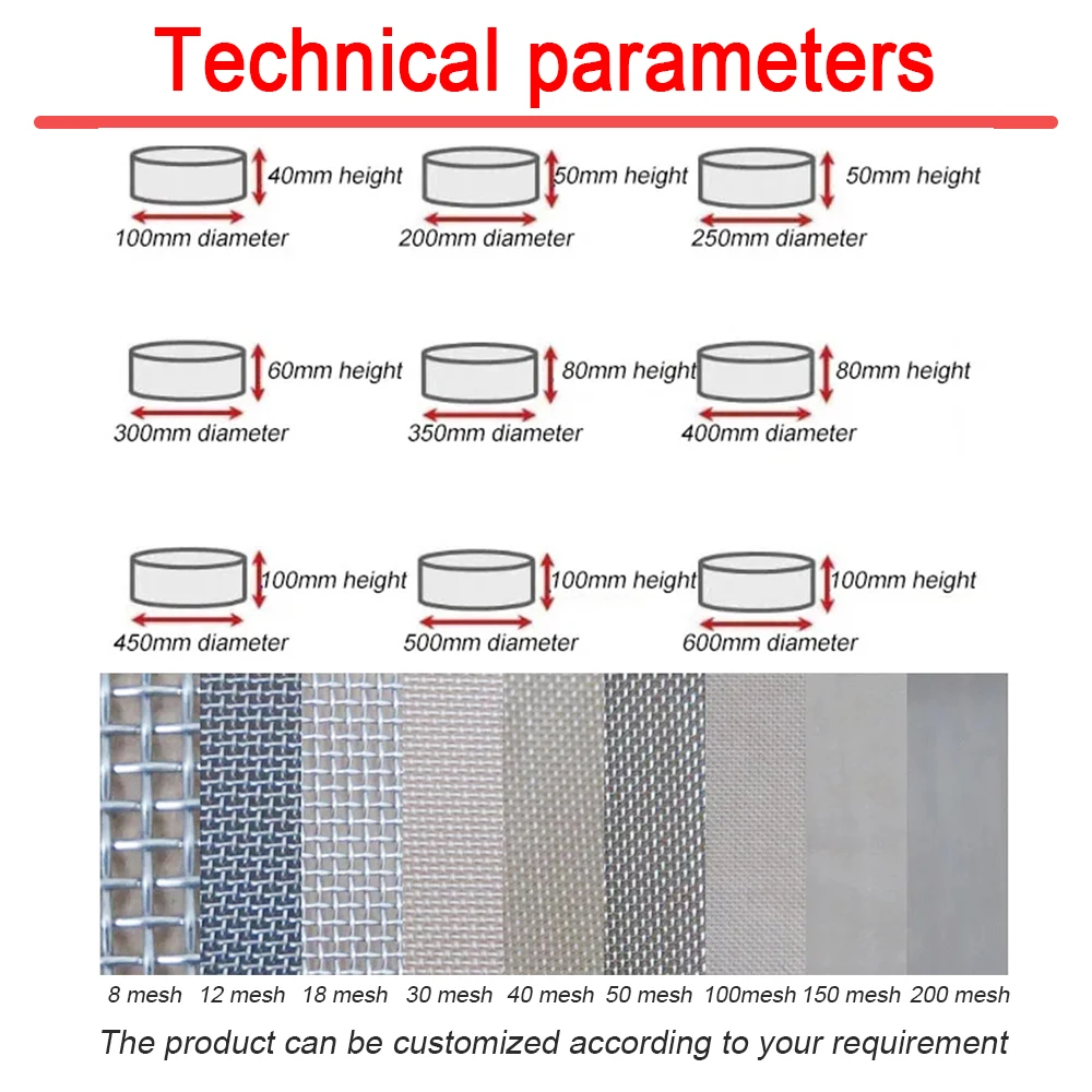 Standard Laboratory Test Sieve 304 SUS Filter Mesh Chroming Frame Sampling Inspection Pharmacopeia Sieve Dia 10cm 4 10 Mesh I4141781382 Apertura: da 0,074 mm a 1,6 mm, come mostra l'immagine seguente. JINGERL 1pc Standard Laboratory Test Sieve 304 SUS Filter Mesh Chroming Frame Sampling Inspection Pharmacopeia Sieve Dia 20cm 80-500 Mesh 1pc (Capacity : 140 mesh(0.105mm Il telaio del setaccio è realizzato da uno stampaggio con macchina, il bordo è rotondo e liscio, nessuna sbavatura, forte e bella. Materiale del telaio: doppia punzonatura Cornice cromata, si prega di prestare attenzione al secco se immerso in acqua, quindi non è facile da arrugginire. Diametro del setaccio: 20 cm Altezza: 5 cm. Come scegliere un setaccio standard:1. Il setaccio della farina di solito usa 40 mesh, 50 mesh o 60 mesh;2. La maschera setaccio in polvere e la polvere tradizionale della medicina cinese di solito scelgono 60 mesh a 120 testa;3. Schermo in polvere di perle di solito secondo lo spessore della polvere per scegliere 100 mesh a 150 mesh;4. La soia di solito usa 5 mesh, fagioli mung uso 10 mesh, il riso di solito sceglie 12 mehs, miglio di solito usa 20 mesh, sesamo usa 20 mesh;5. Il setaccio del morso di Tenebrio di solito utilizza 12 mesh, la schermata di erba cipollina degli insetti di solito utilizza 30 mesh a maglia Apertura (mm) Apertura a rete (mm) Apertura a rete (mm) Apertura della maglia (mm)4 5mm 24 0.85mm 70 0.22mm 190 0.080mm5 4mm 26 0.71mm 75 0.2mm 200 0.075mm6 3.2mm 28 0.63mm 80 0.18mm 250 0.063mm7 2.8mm 30 0.6mm 90 0.16mm 300 0,054mm8 2,5 mm 35 0.5mm 100 0.15mm 325 0,045mm10 2mm 40 0,45mm 120 0.125mm 360 0,04mm12 1.6mm 45 0.4mm 130 0.111mm 400 0.0385mm14 1.43mm 50 0.355mm 140 0.105mm 500 0,03mm16 1,25 mm 55 0.315mm 150 0.1mm 600 0.025mm18 1mm 60 0.3mm 160 0.098mm 800 0,015mm20 0.9mm 65 0,25 mm 180 0.09mm 1000 0.005mmHope you could enjoy the shopping~ Edge interiore e schienale Tutto l'uso della tecnologia senza soluzione di continuità, il collasso stretto dello schermo senza materiale di perdita.