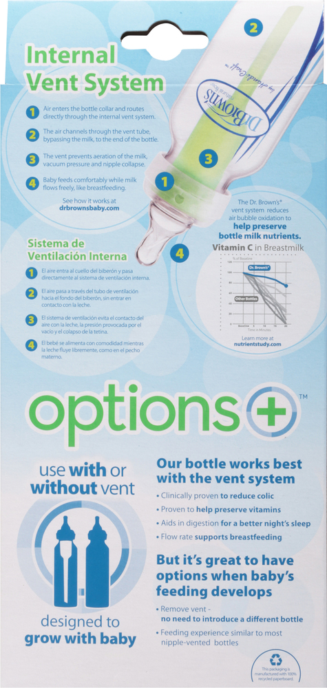 È clinicamente dimostrato che il sistema di ventilazione interno anti-coliche riduce le coliche. Il sistema di sfiato anti-coliche ha dimostrato di aiutare a preservare i nutrienti del latte in bottiglia e aiuta la digestione per un sonno migliore. Lavabile in lavastoviglie. Brown's il biberon consigliato dai professionisti sanitari n. 1 nel Regno Unito. * Le bottiglie Dr. Realizzata per crescere con il bambino, la nostra bottiglia è progettata per nutrirsi durante tutte le fasi di alimentazione del bambino ed è riciclabile. Dr. Brown's Natural Flow Anti-Colic Options+ Narrow Baby Bottle, Bear & Owl, 8 oz/250 mL, with Level 1 Slow Flow Nipple, BPA Free, 0m+, 2-Pack 4.8 out of 5 stars 1,045 4 offers from $1357 $ 13 57 Diminuisce sputi, rutti e vento, risultando in un'esperienza di alimentazione più confortevole per il bambino. Diminuisce lo sputo, l'eruttazione e il vento. Portata costante. Glass Bottles Set Mam Easy Start Anti-Colique Bottiglia Per Neonati Anti-colica Flusso 2 Dalla Nascita 0 Mesi E Dr. Brown's Le tue opzioni non sono mai state migliori con Dr. Brown's Natural Flow Anti-Colic Options+ funziona meglio con il sistema di ventilazione interno in posizione, ma può essere rimosso man mano che l'alimentazione del bambino si sviluppa - non è necessario introdurre una bottiglia diversa. CONSERVA I NUTRIENTI. Brown's forniscono un flusso costante in modo che il bambino possa nutrirsi al proprio ritmo. Brown's Glass sono resistenti al calore e agli shock termici, in grado di resistere a temperature calde e fredde, insieme a cambiamenti di temperatura graduali. La forma della tettarella simile al seno incoraggia un corretto fermo per un'esperienza di allattamento più naturale e facilita il passaggio dal seno al biberon e viceversa. Il sistema Dr. Questa alimentazione senza vuoto è più vicina all'allattamento al seno e le tettarelle in silicone Dr. Brown's Vent ha dimostrato di aiutare a preservare i nutrienti del latte in bottiglia e aiuta la digestione per un sonno migliore.